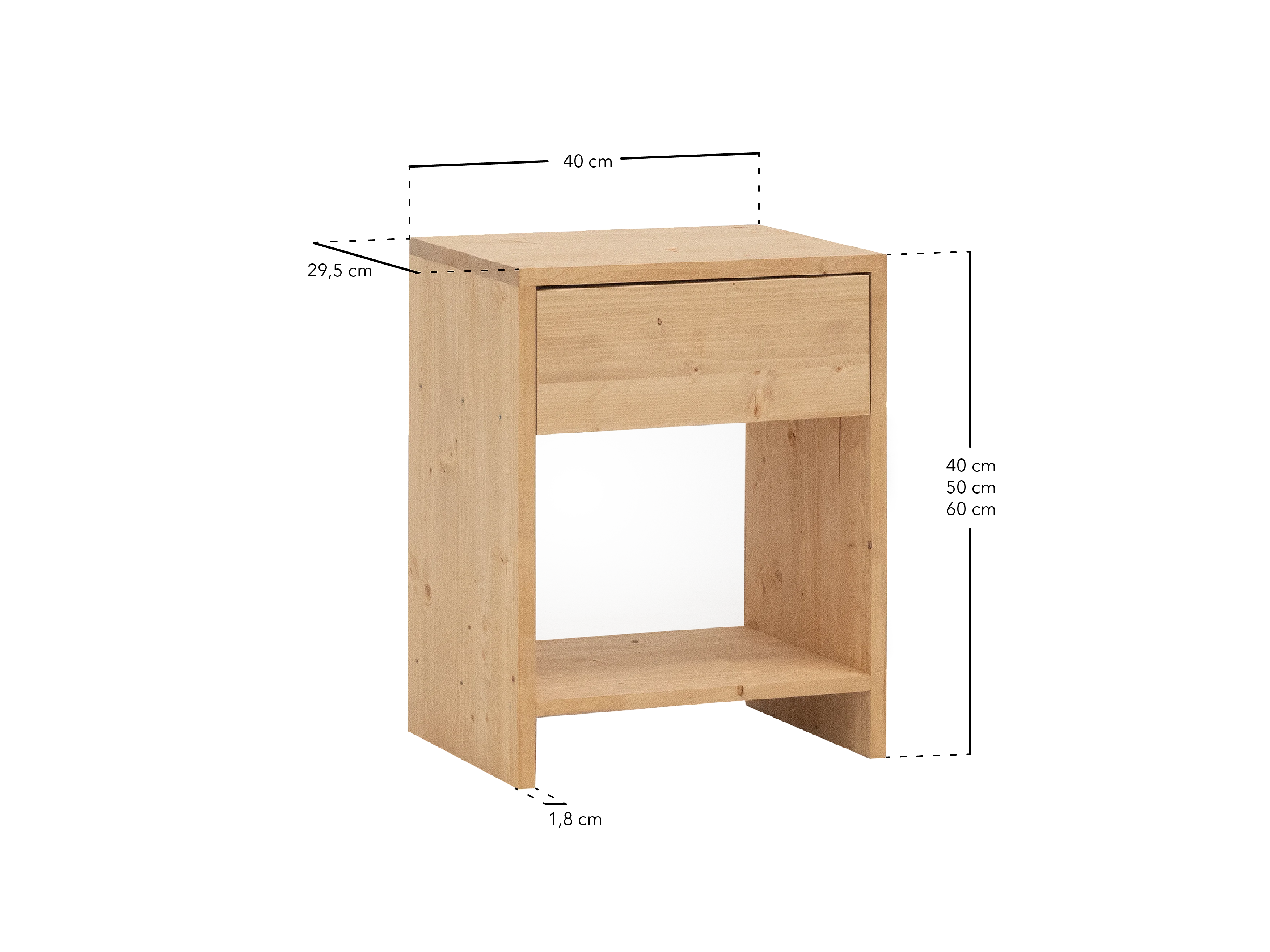 Mesita de noche de madera de abeto Decowood con cajón y balda en color nogal de 40x40cm - MARTINA - DECOWOOD