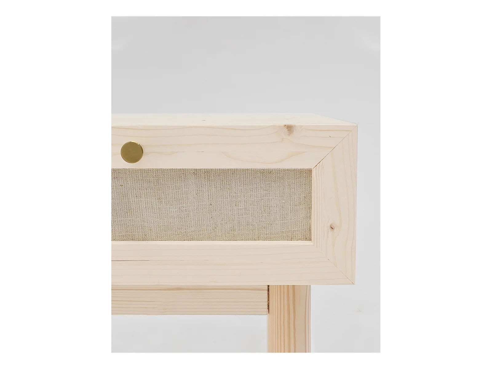 Mesita de noche de madera de abeto maciza y lino Decowood con cajón en color natural de 40x45cm - LINEN - DECOWOOD