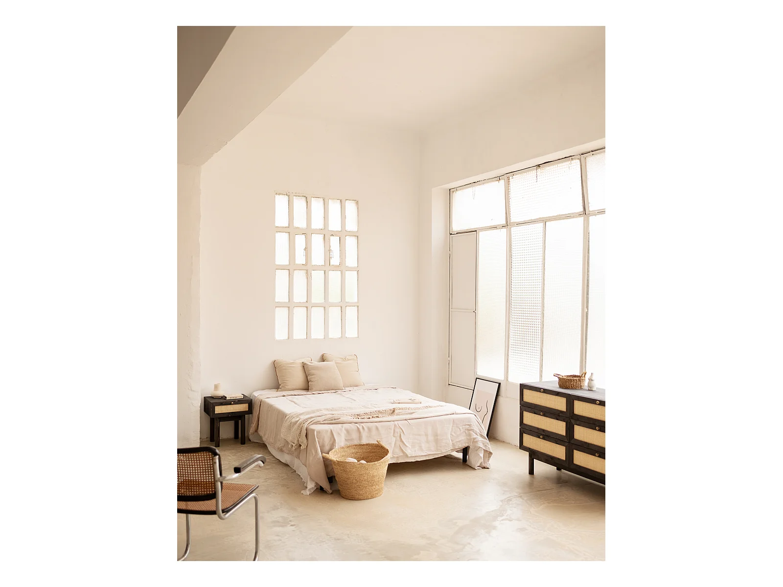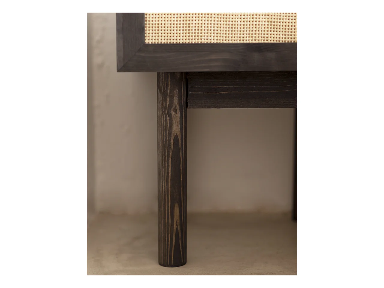 Mesita de noche de madera de abeto maciza y rafia Decowood con cajón en color negro de 40x45cm - FRIDA - DECOWOOD