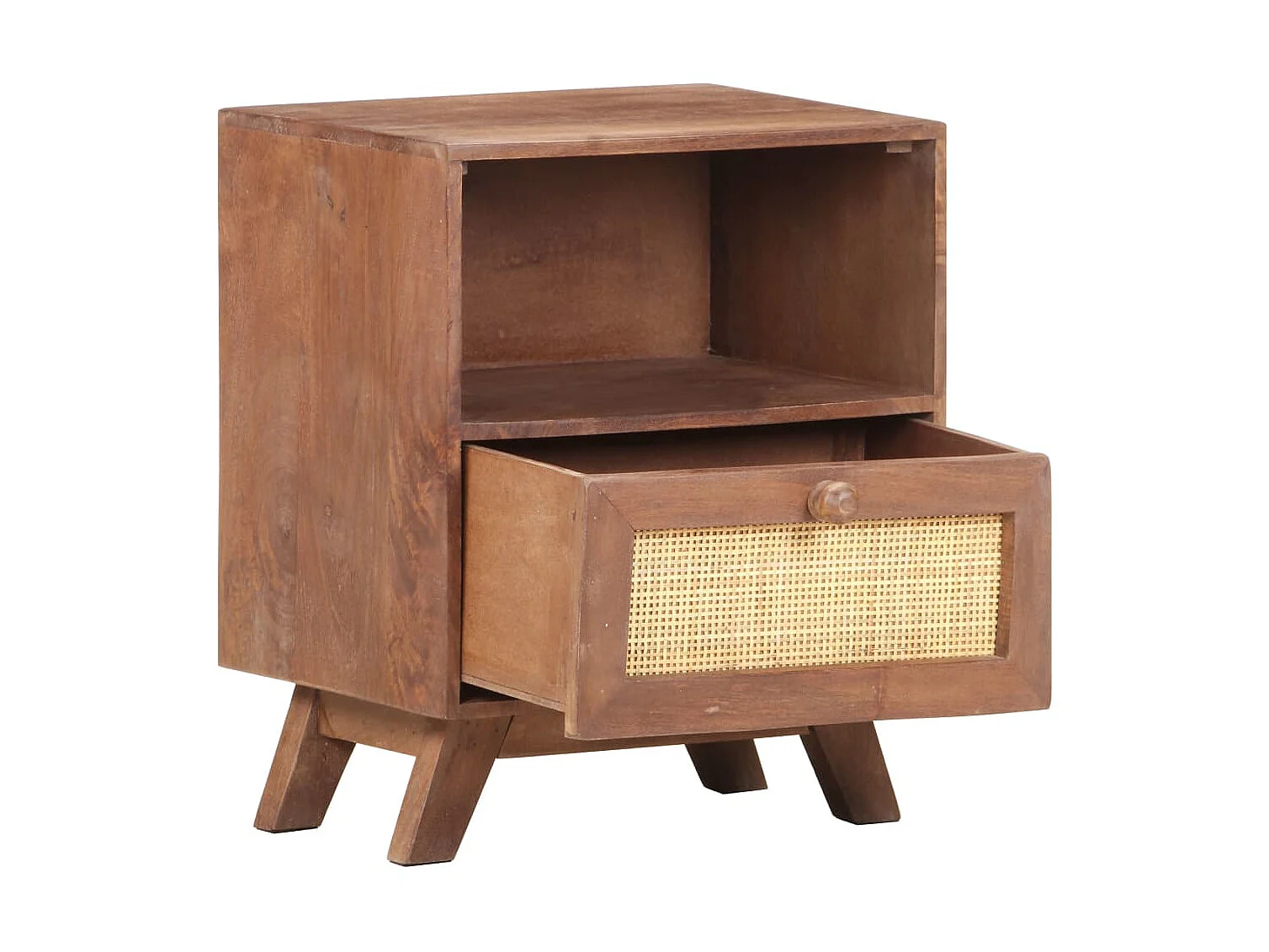 Mesita de noche madera maciza mango y caña natural 40x30x50 cm ES32049