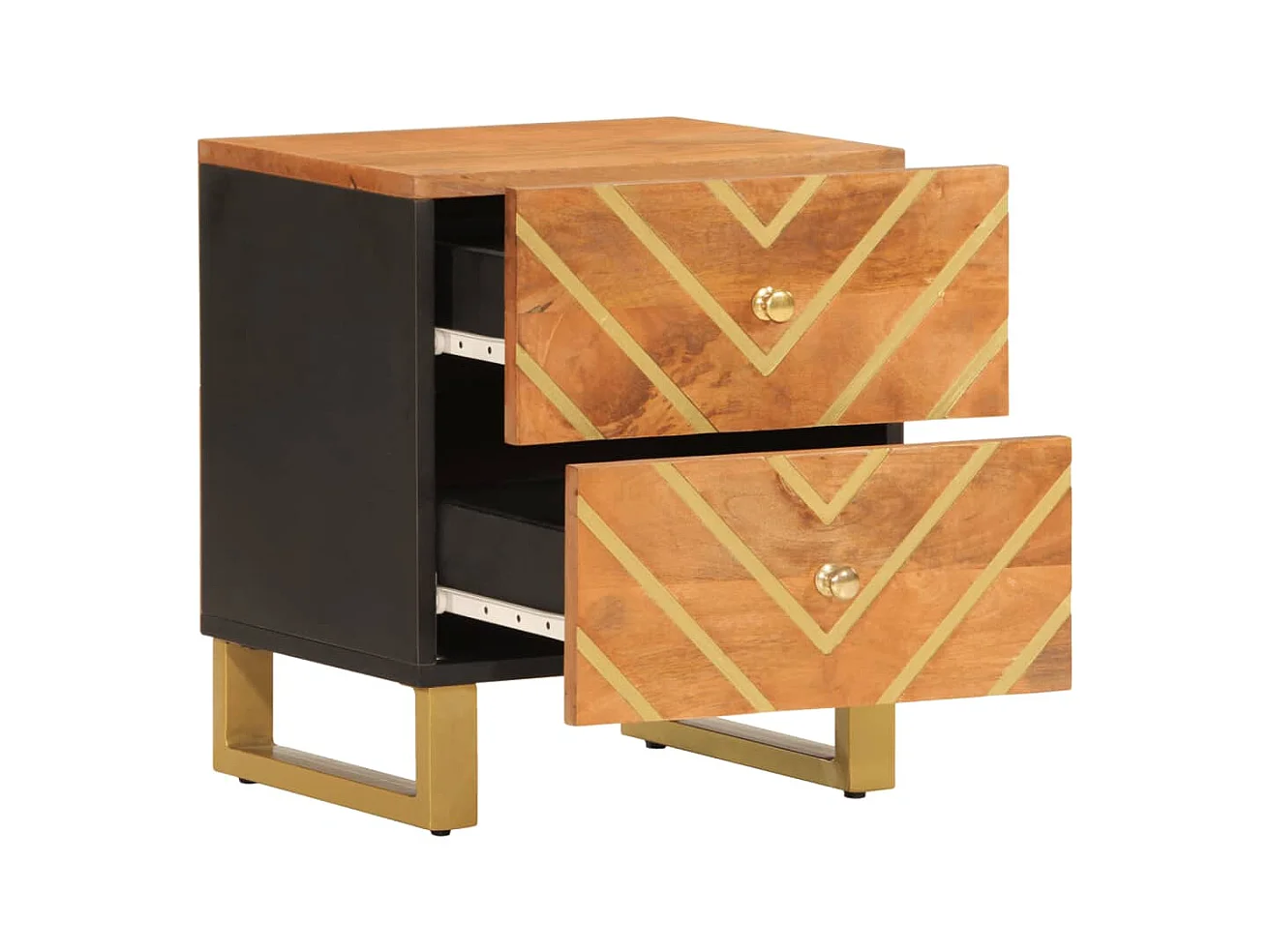 Mesita de noche de madera maciza de mango marrón y negro ES18204