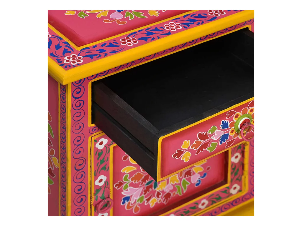Mesita de noche de madera maciza de mango rosa pintada a mano ES95807