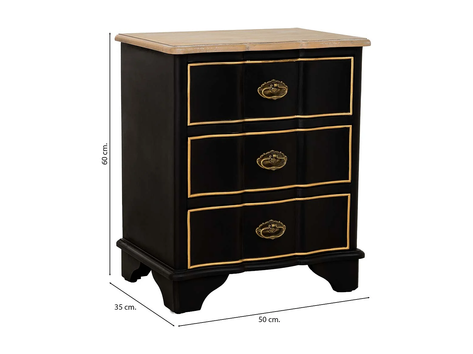 Mesita de noche de madera negra 50x35x60h cm