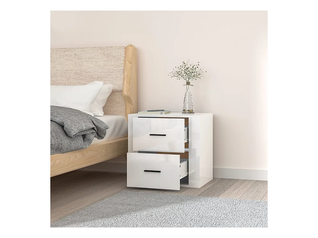 Mesita de noche madera contrachapada blanco brillo 39x39x47,5cm ES73439