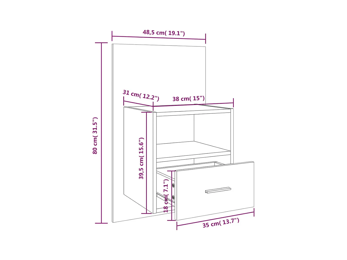 Mesita de noche MDF y madera de pino 35x32x59 cm