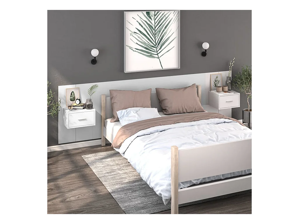 Lote de 2 Mesitas de noche de pared blancas ES15773