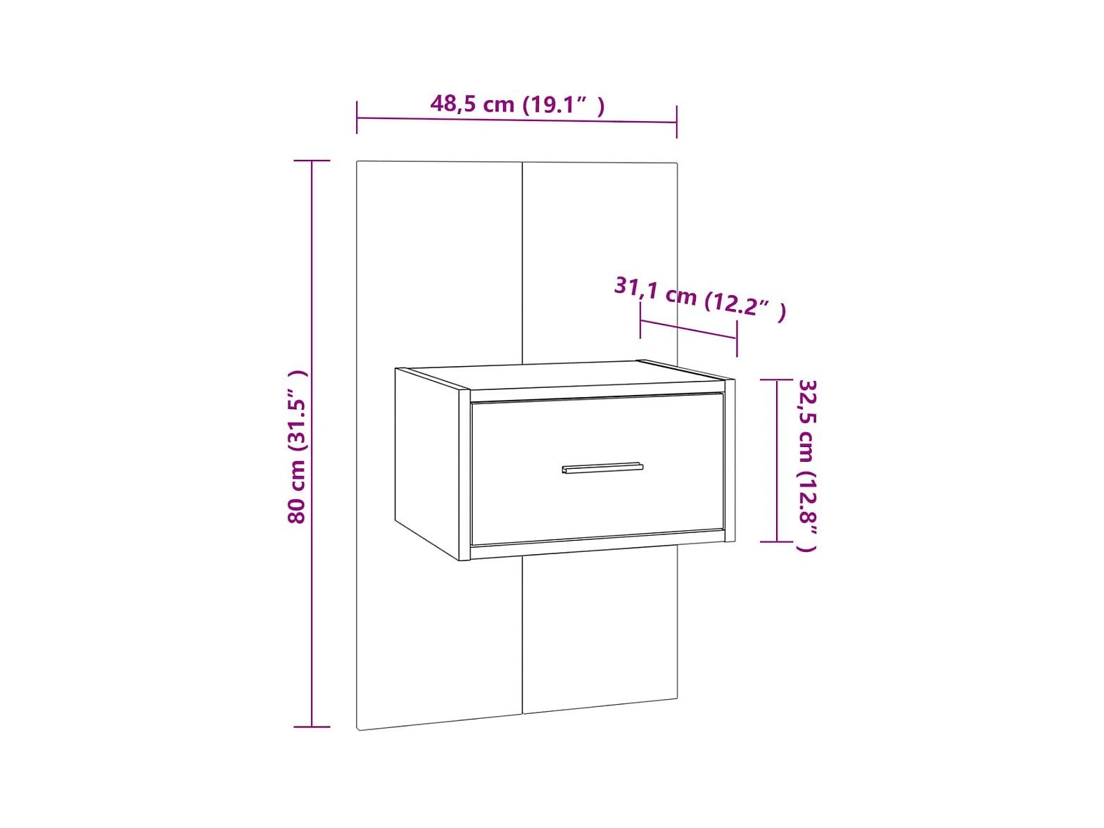 Mesita de noche de pared Blanco