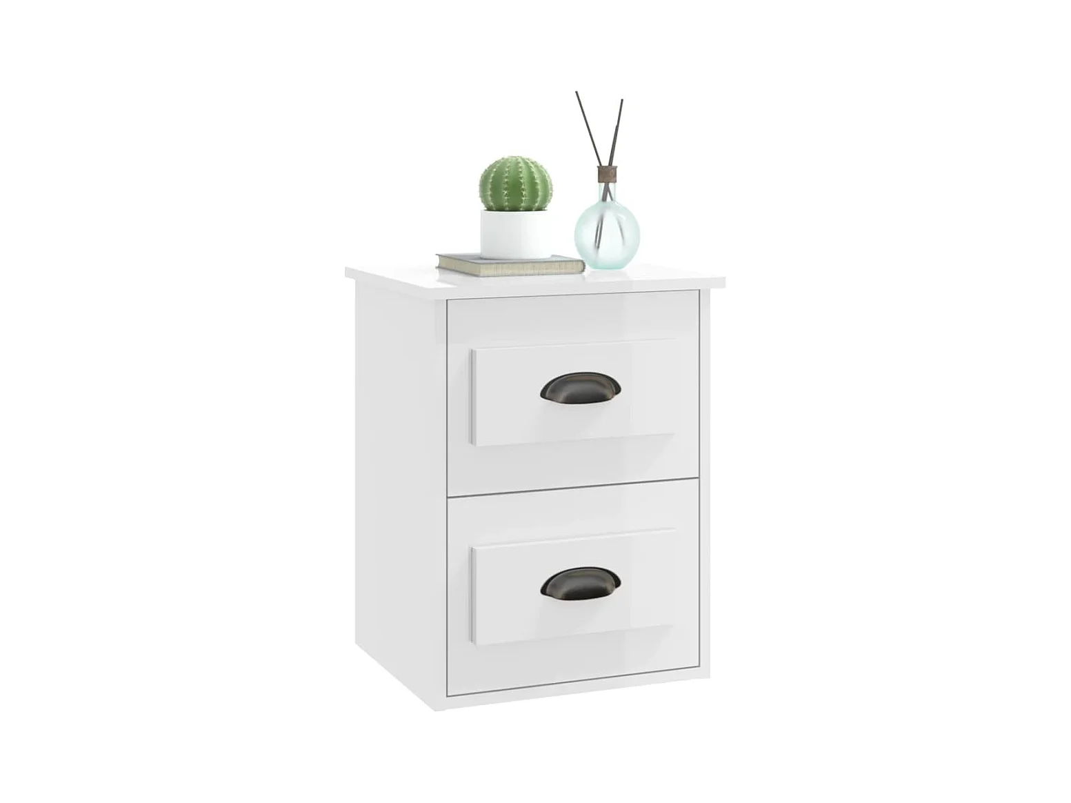 Mesita de noche de pared en blanco brillo 41,5x36x53 cm