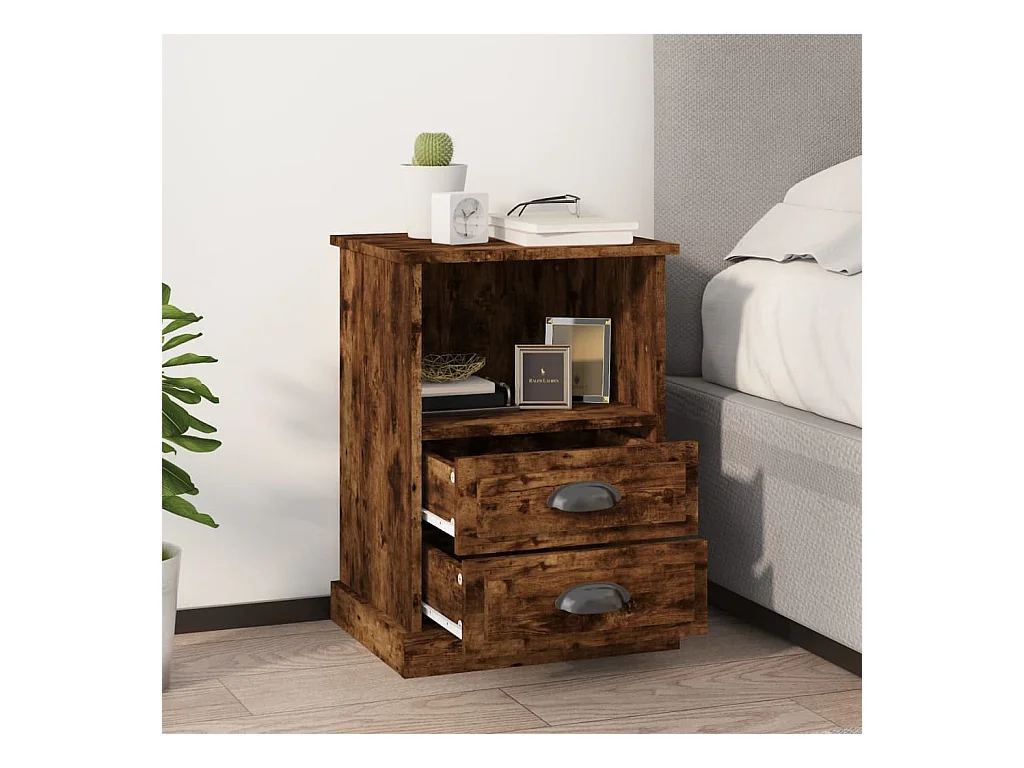 Mesita de noche de roble ahumado 50x36x60 cm Madera de ingeniería