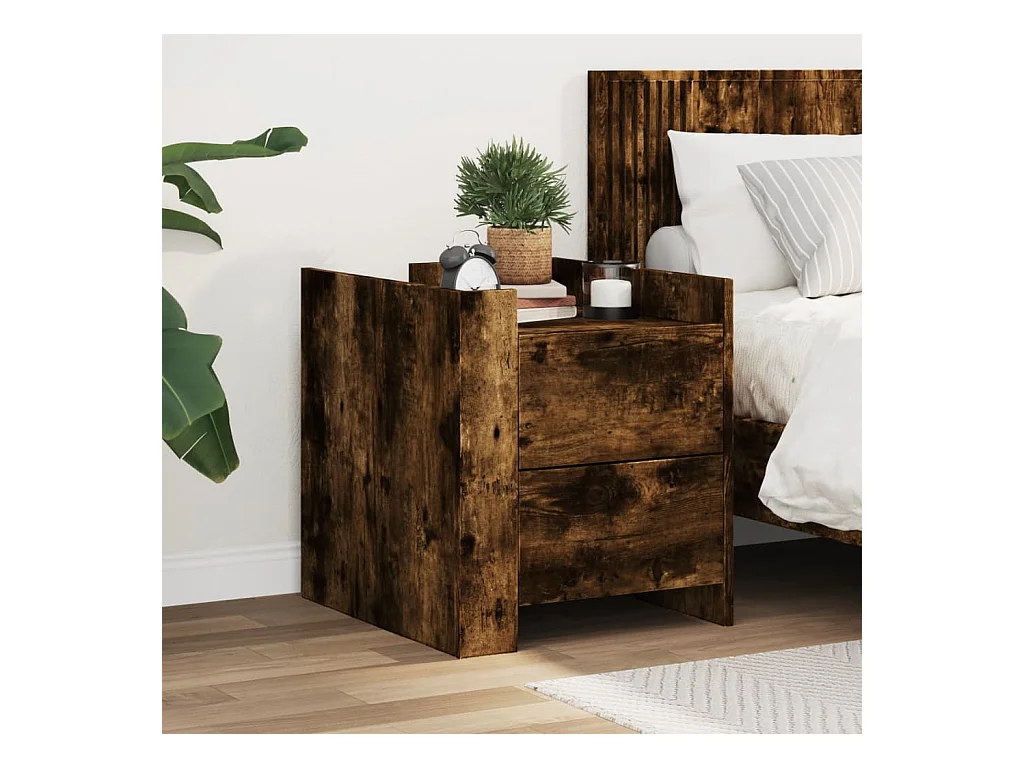 Mesita de noche de roble ahumado 45x50x50 cm madera de ingeniería