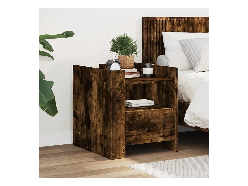 Mesita de noche de roble ahumado 45x50x50 cm madera de ingeniería