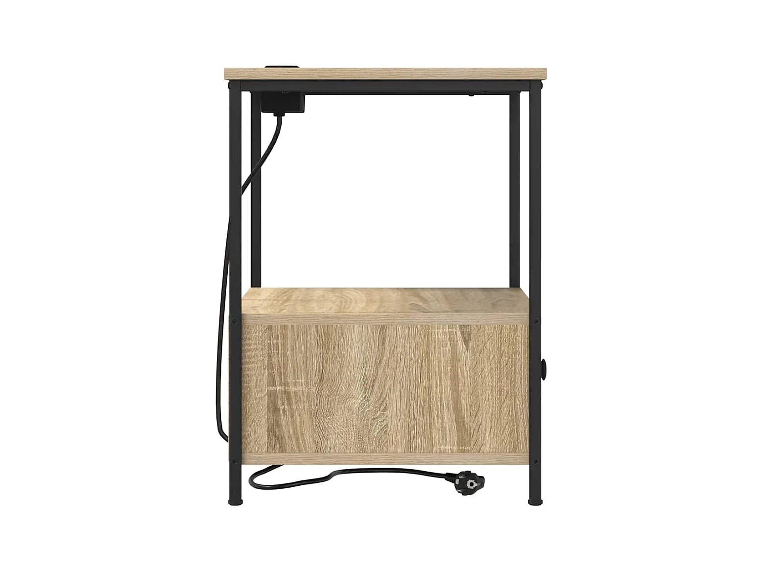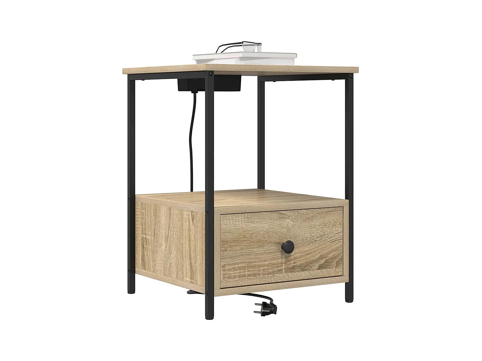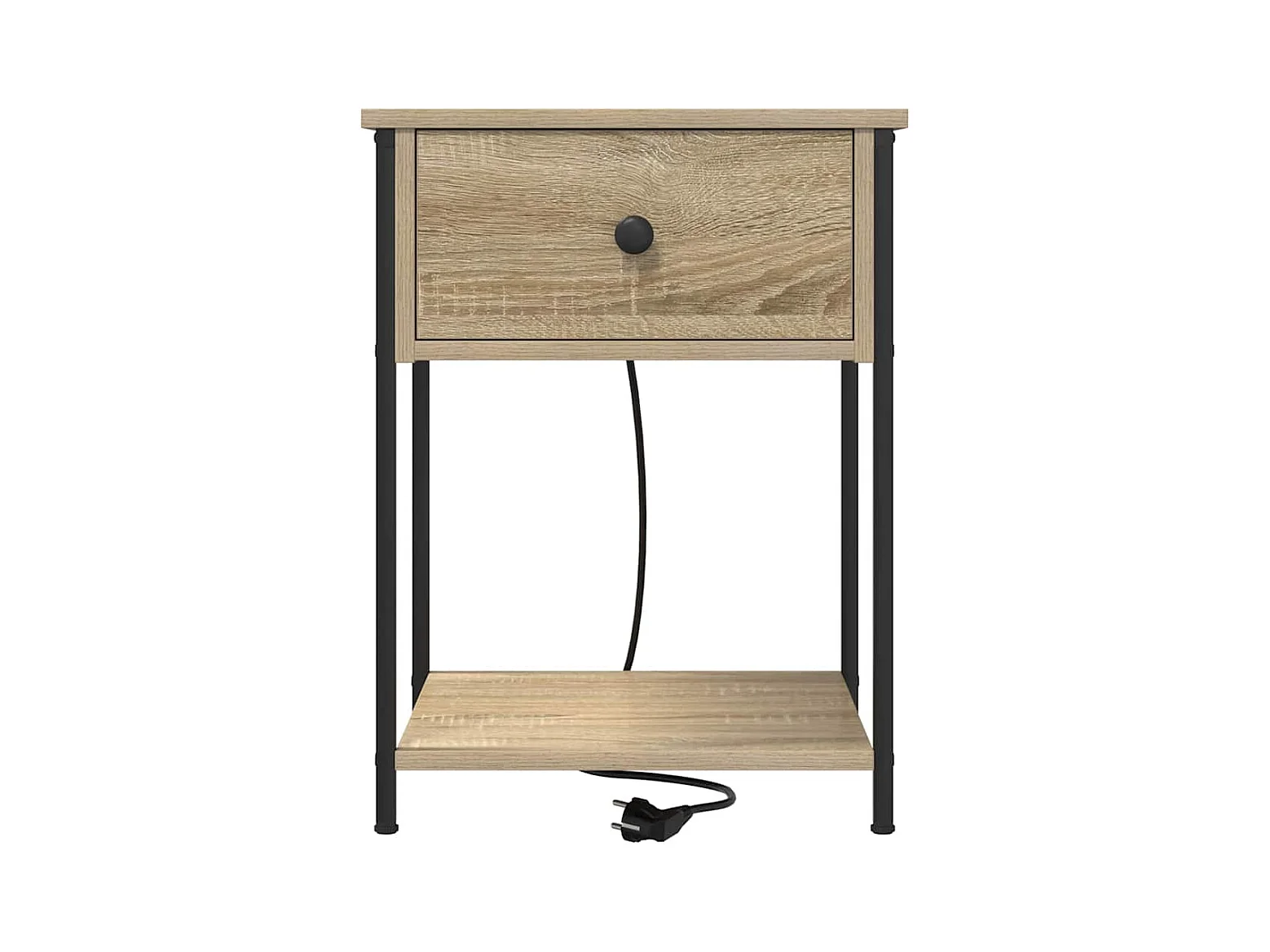Mesilla de noche con estación de carga con cajón Roble ahumado