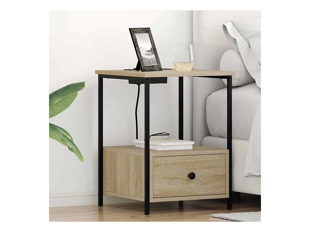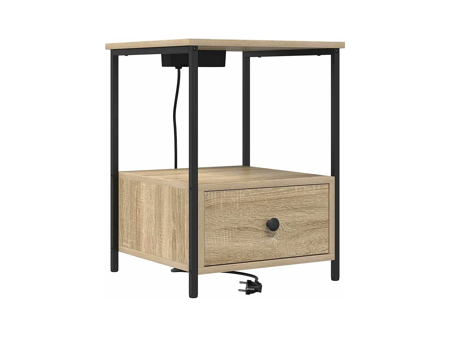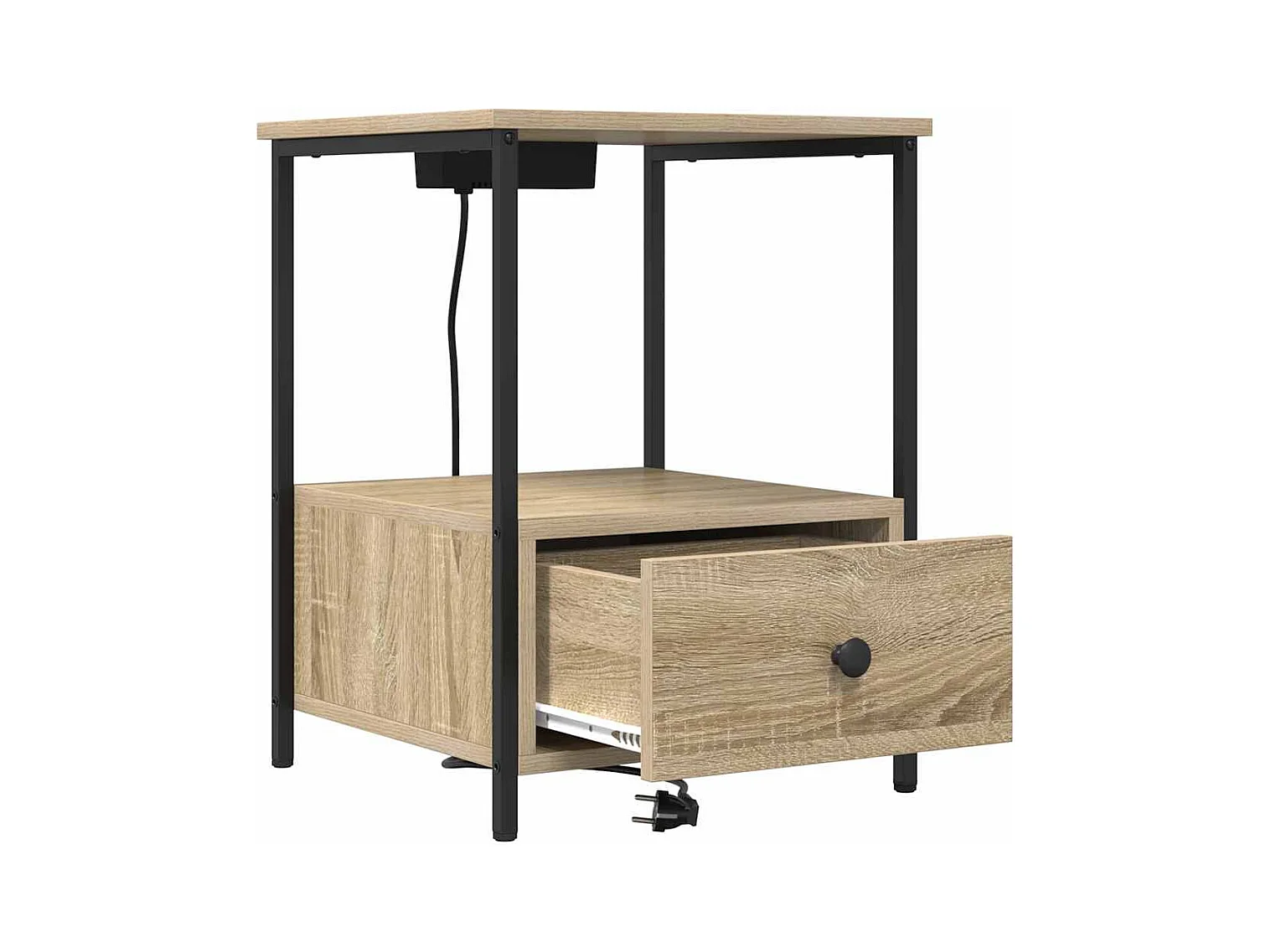 Mesilla de noche con estación de carga con cajón Roble ahumado