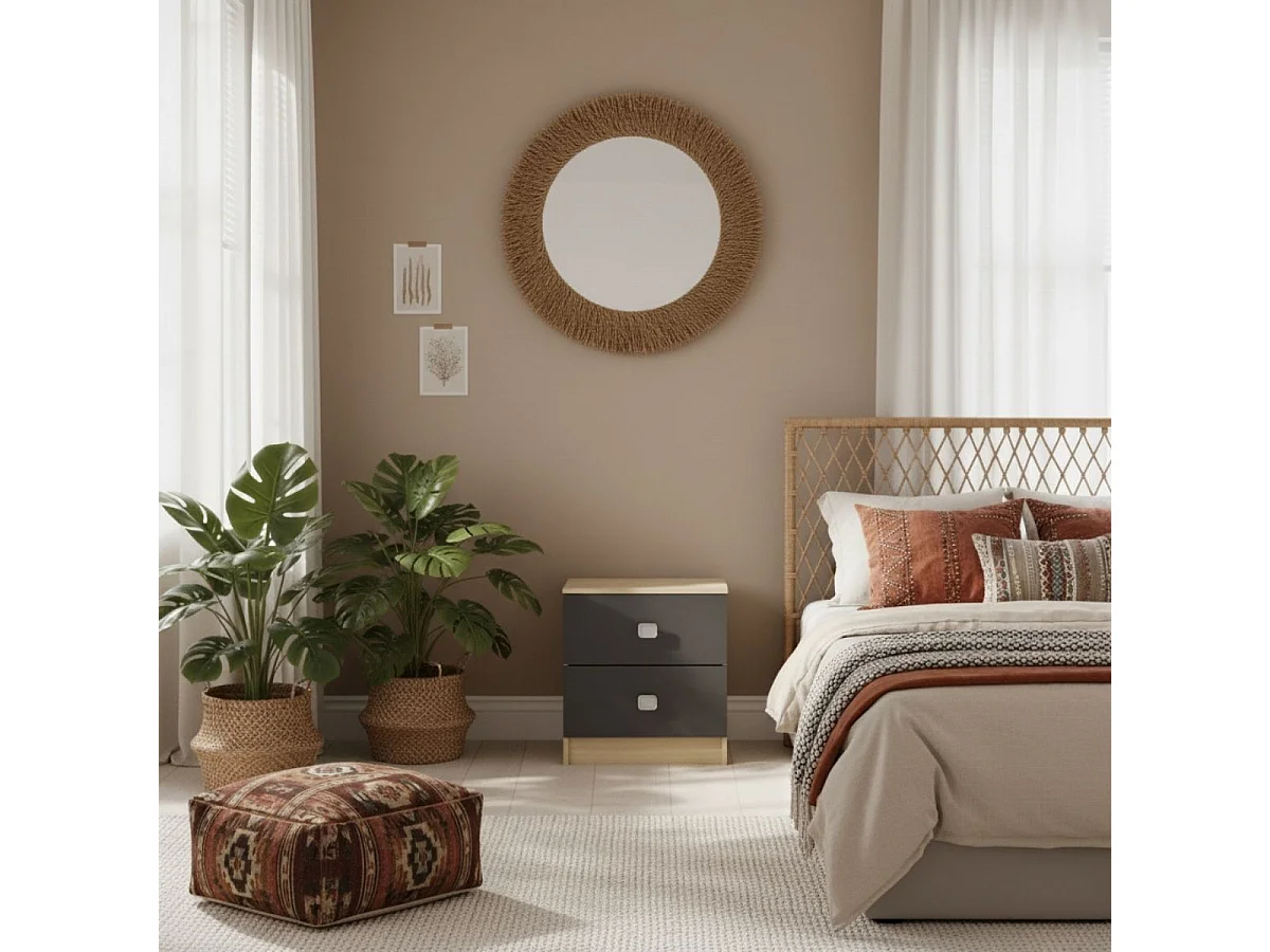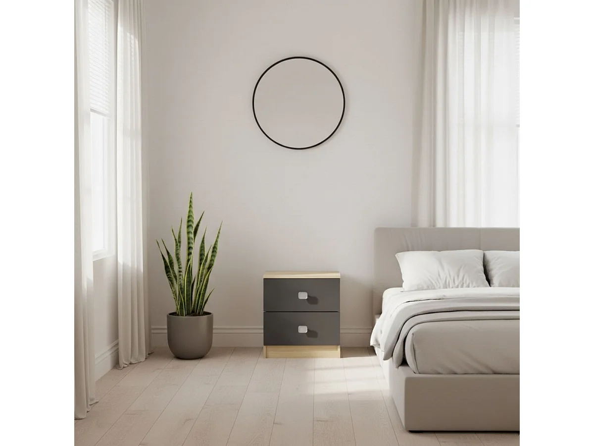 Mesita de noche Donald 2 cajones puccini/grafito 53,8x44,6x33,5 cm
