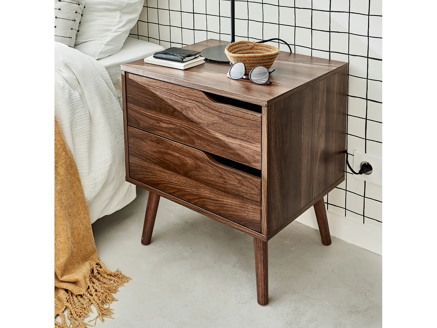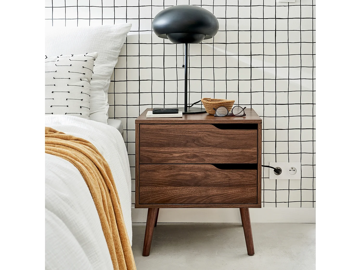 Mesita de noche estilo escandinavo, set de 2 nogal