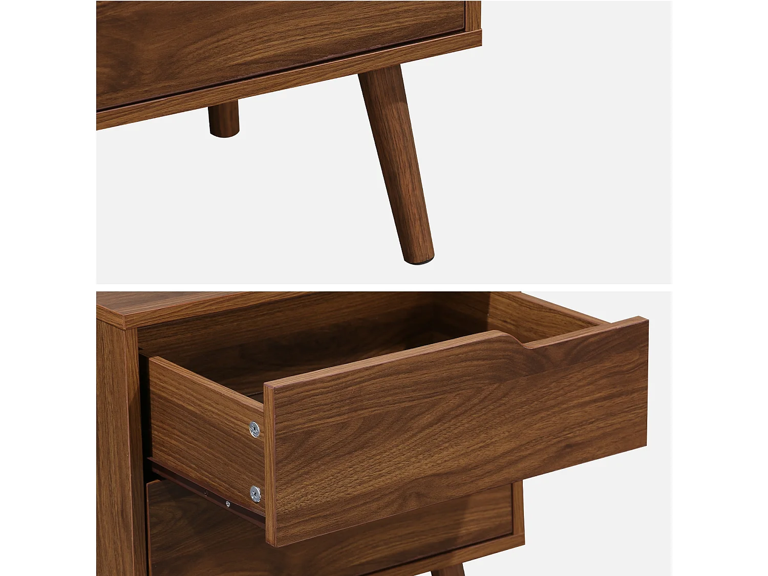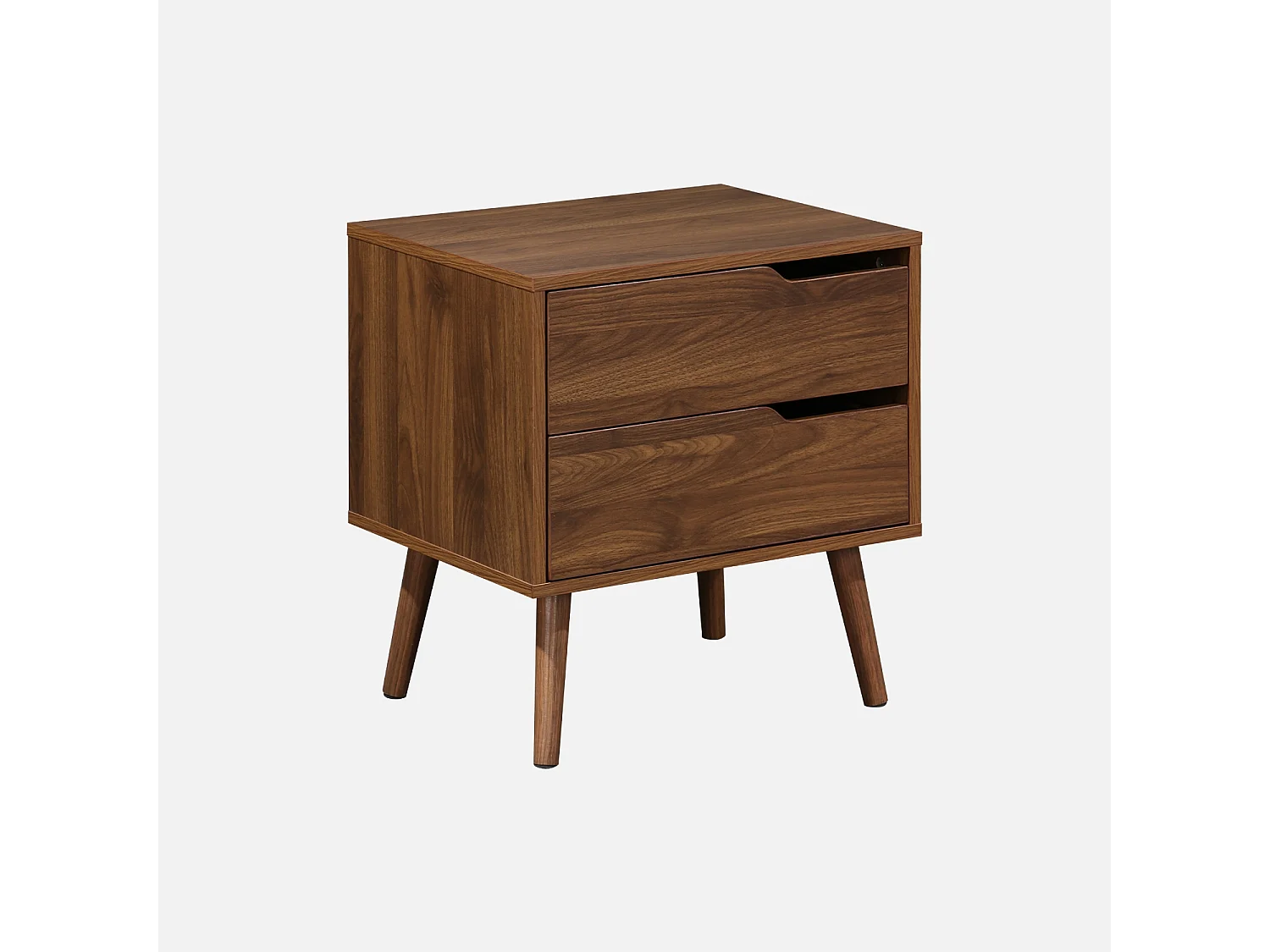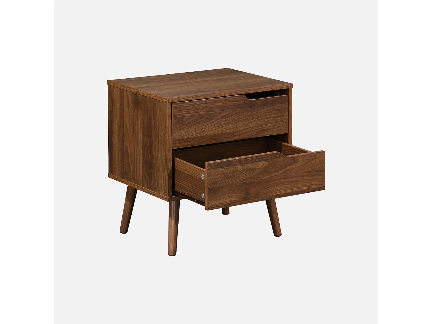Mesita de noche en acabado estilo nogal, 2 cajones marrón