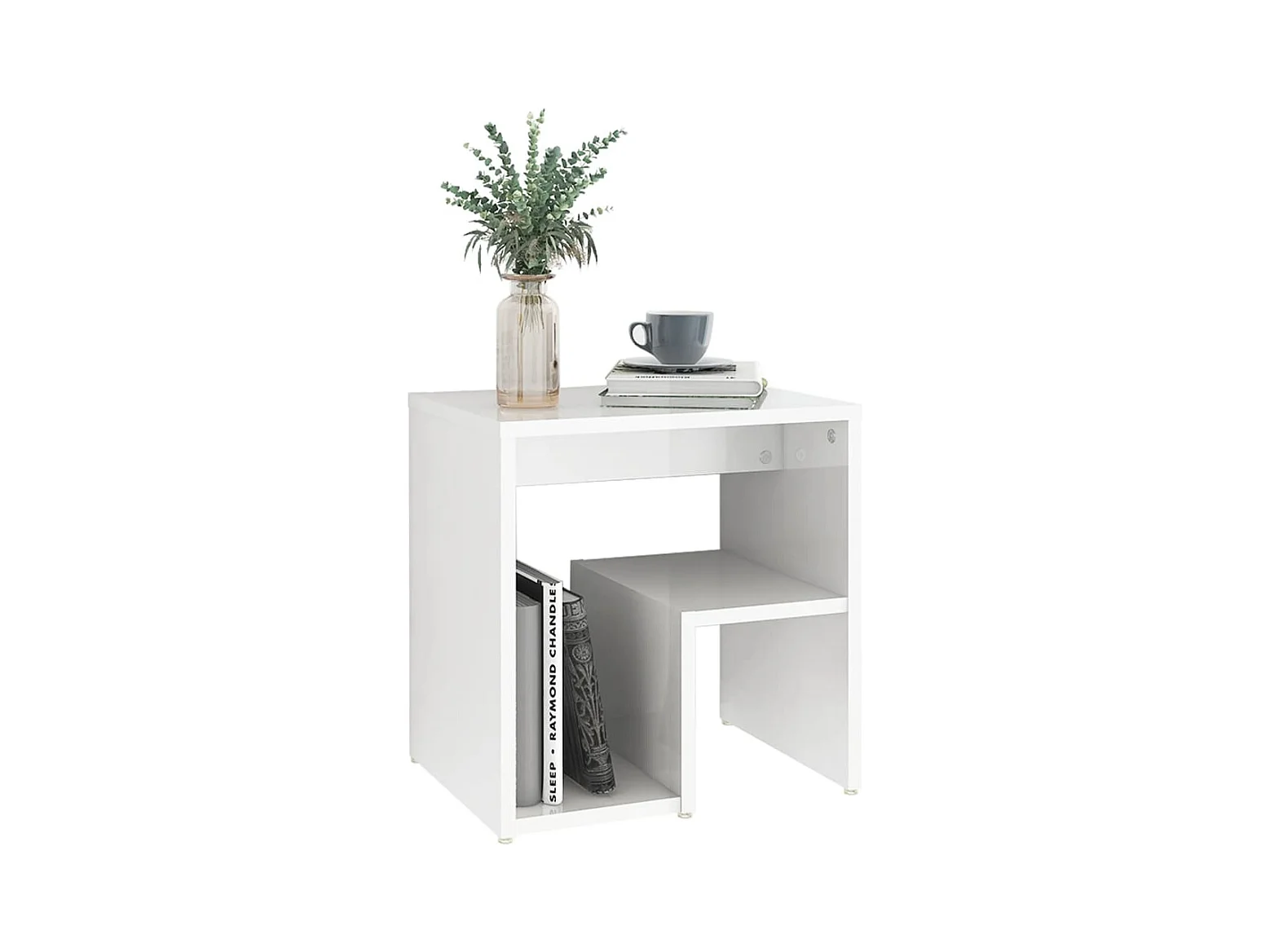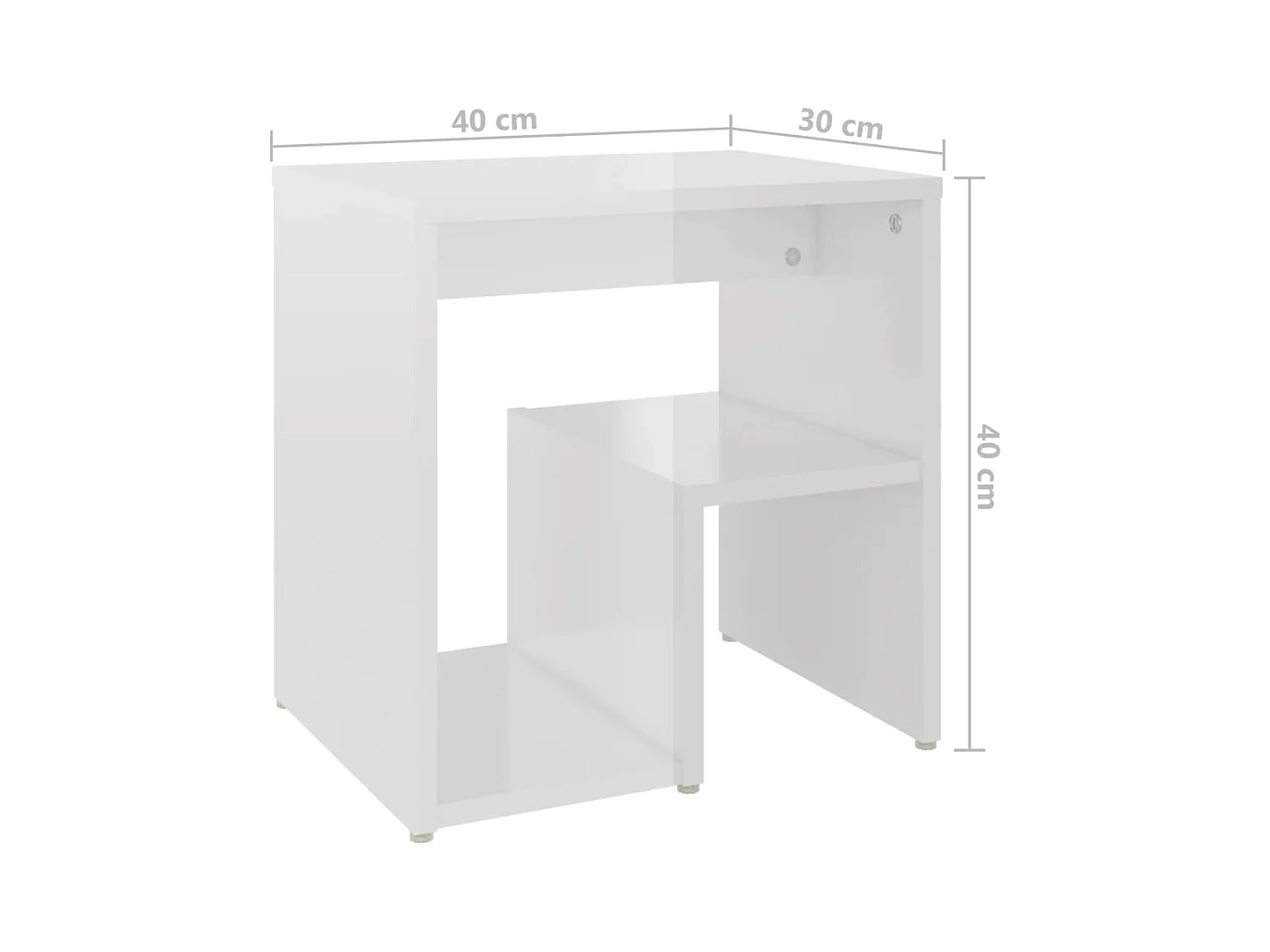 Mesita de noche en madera de ingeniería blanca brillante 40x30x40 cm