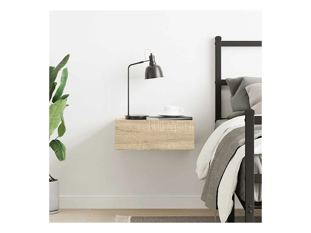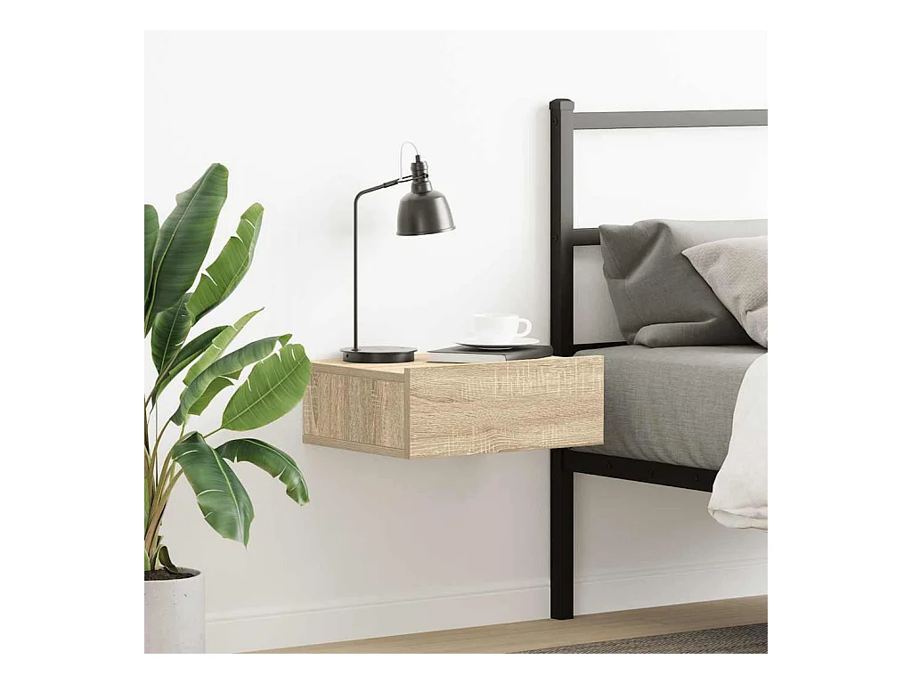 Mesita de noche flotante de madera de ingeniería de roble Sonoma