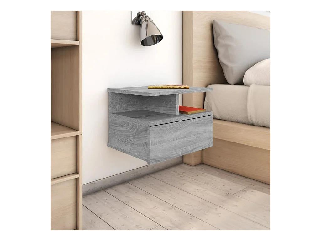 Mesita de noche flotante de madera de ingeniería gris Sonoma
