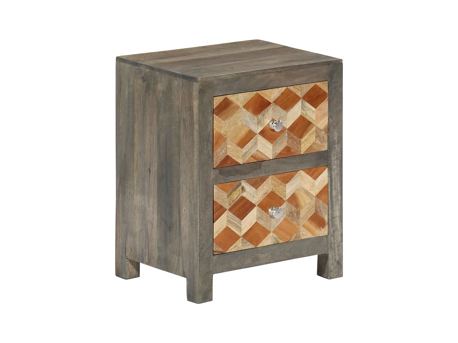 Mesita de noche Gris 40x30x50 cm Madera maciza de mango