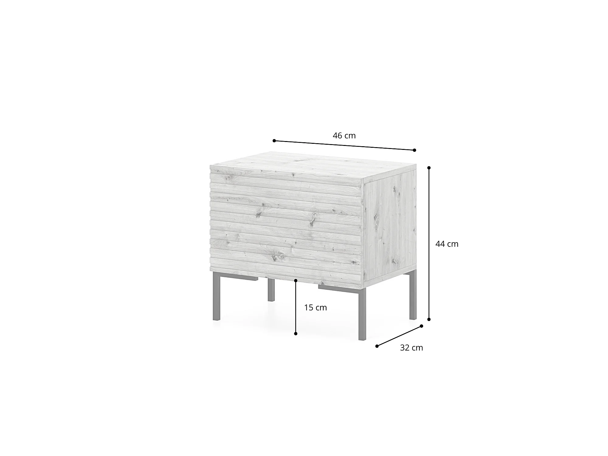 Mesita de noche con 2 cajones acabado blanco-plata, 48cm(alto) 46cm(ancho) 33cm(fondo)