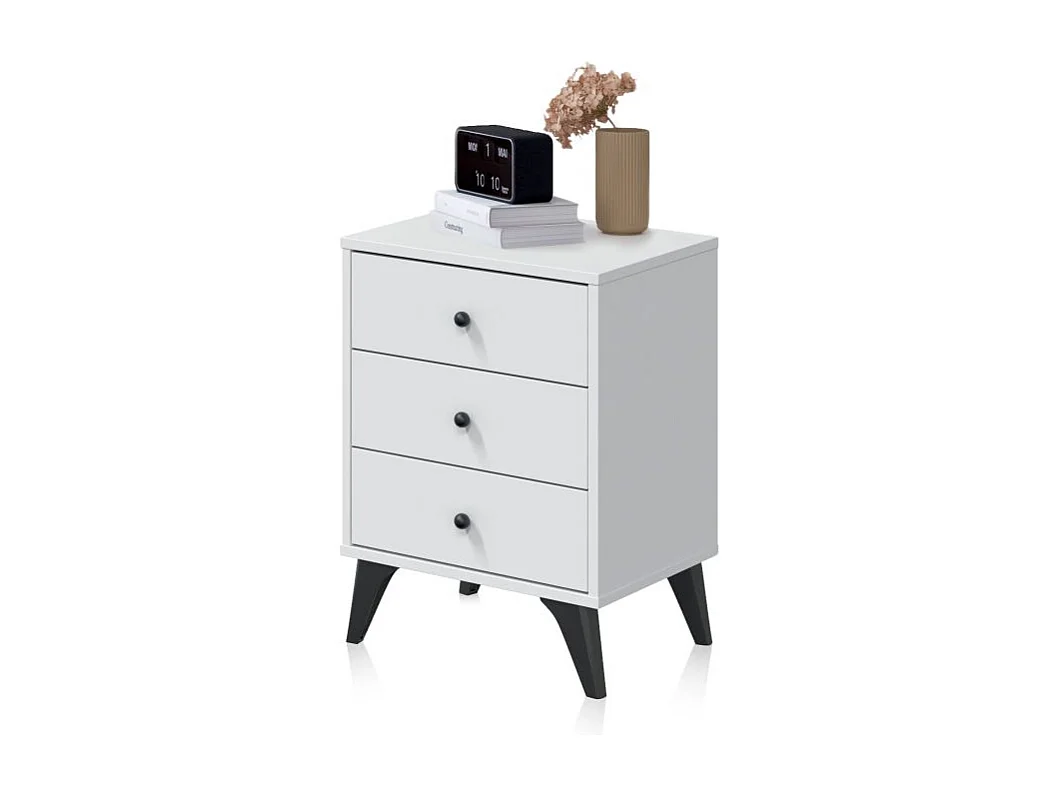 Mesita de noche Numa 3 cajones Blanco - Oak Soft