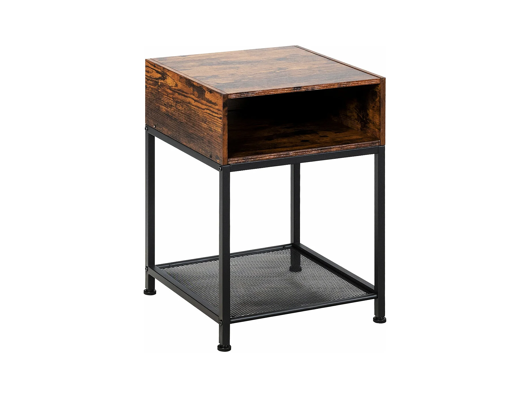 Mesita de noche industrial con 1 estante y 1 compartimento abierto marrón+negro 20_0009399