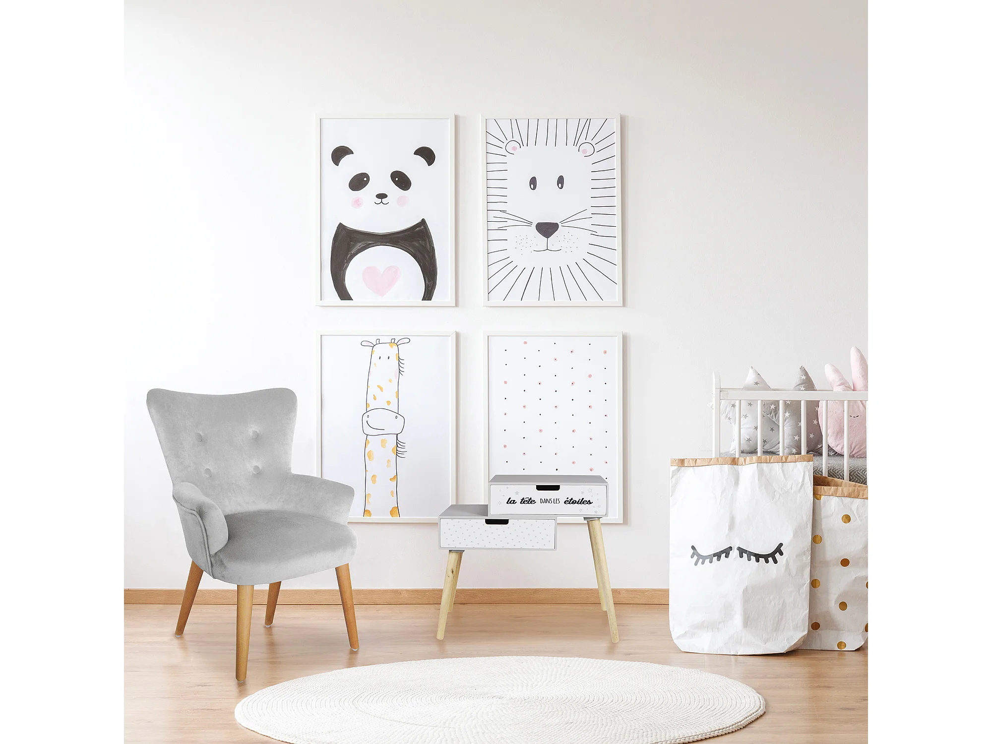 Mesita de noche infantil de madera La tête dans les étoiles