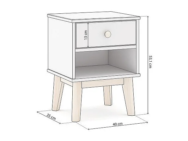 Mesita de noche para dormitorio Dylan 1 cajón acabado blanco/cera blanca, 40cm(ancho) 53.