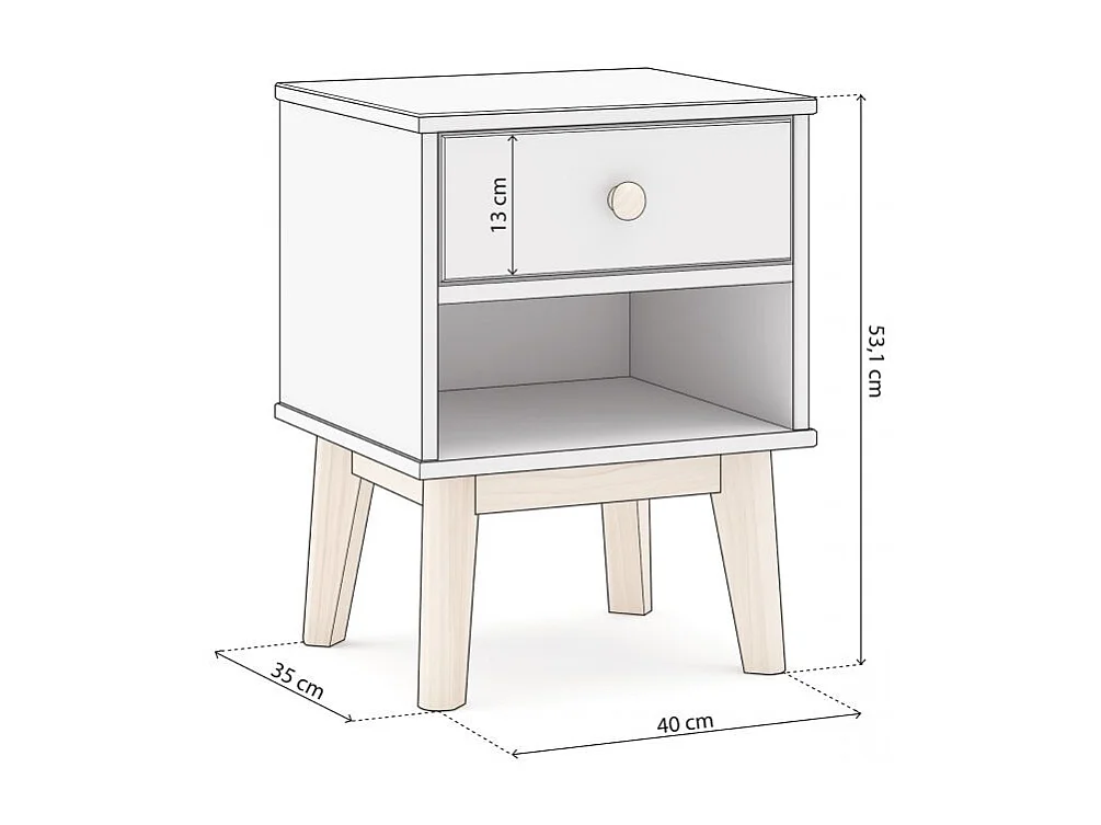 Mesita de noche juvenil Misty Breeze Blanco - Oak Soft