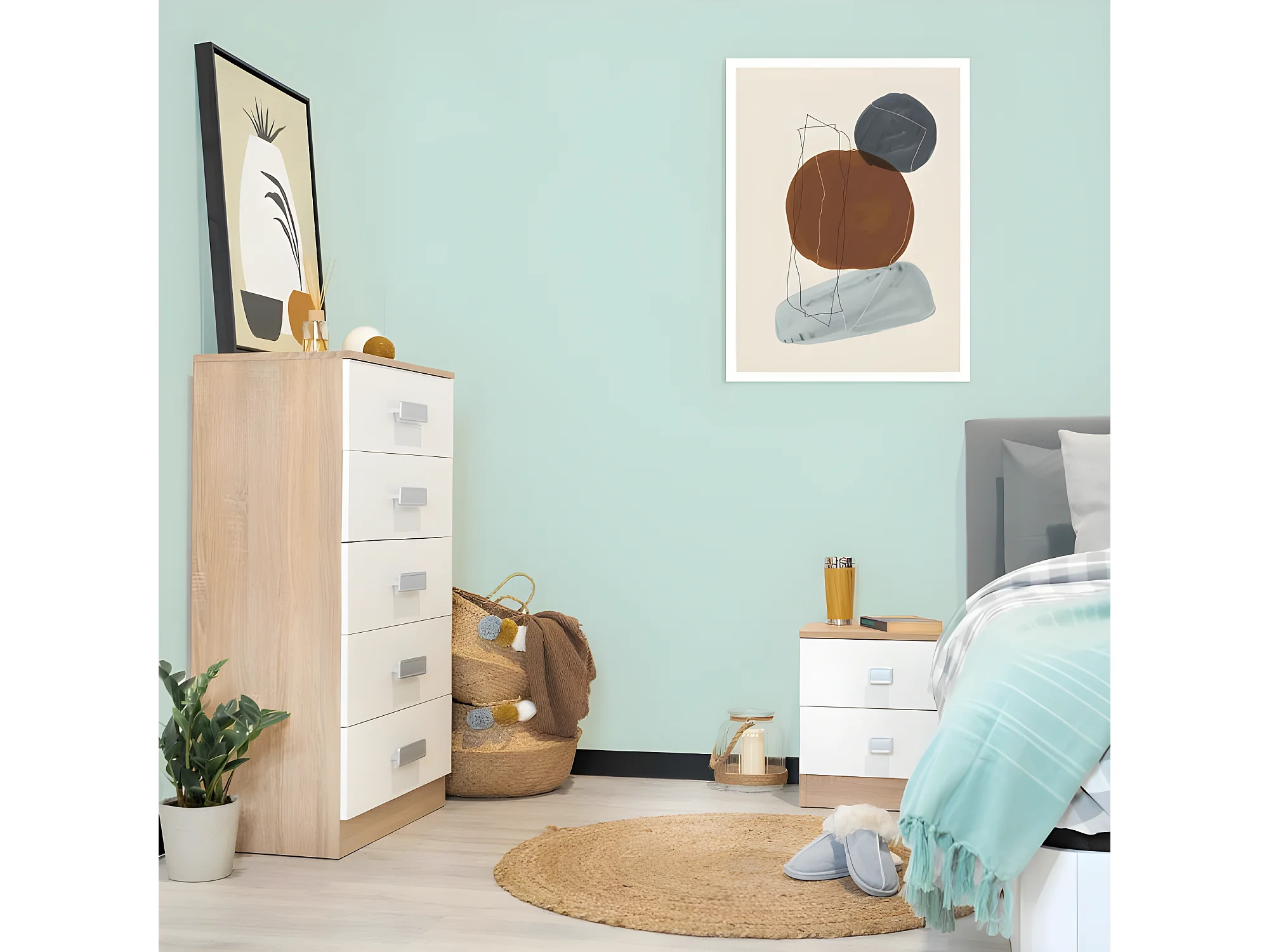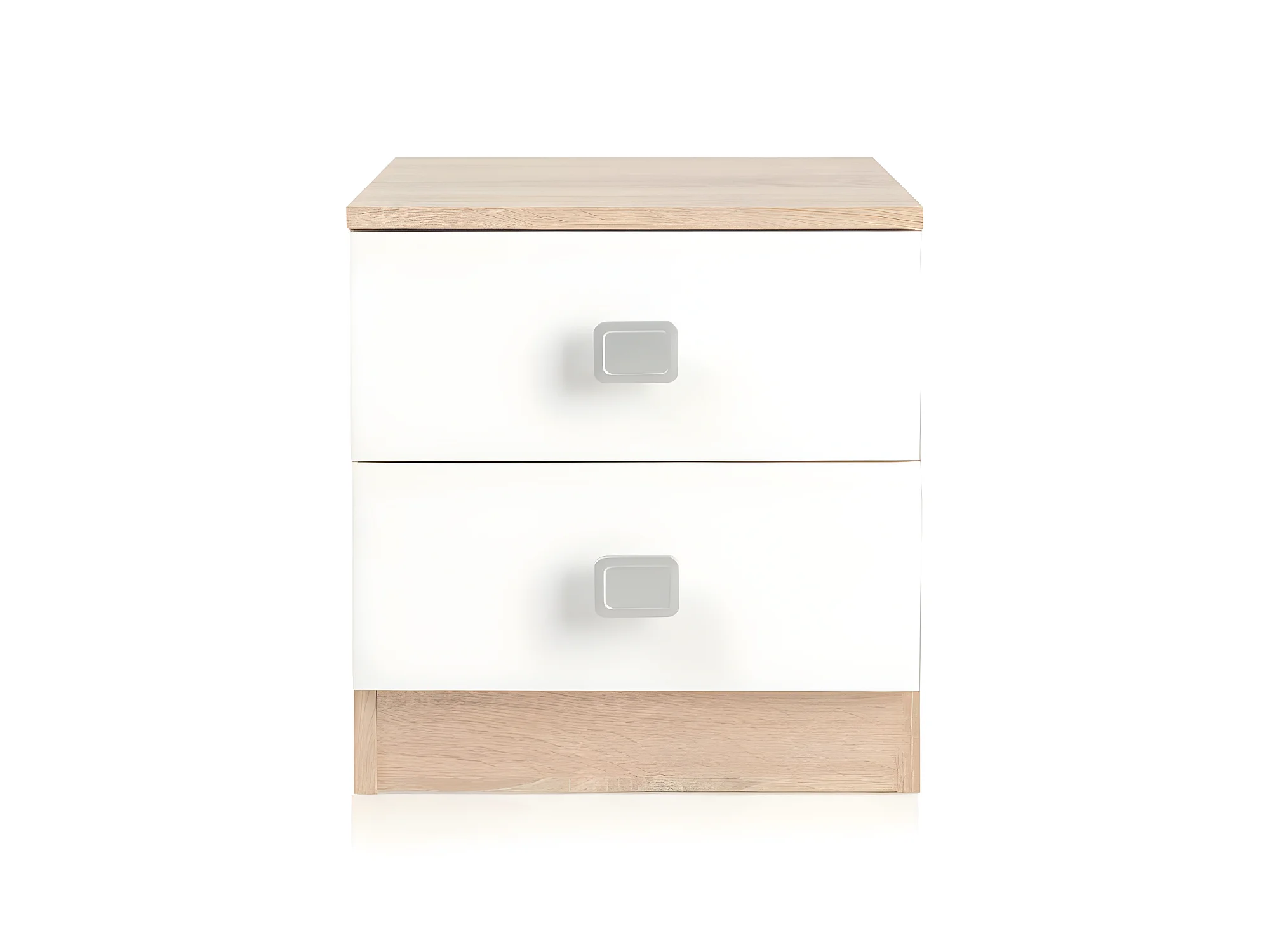 Mesita de noche Leia Blanco Artik (Blanco Mate) - Roble Nodi