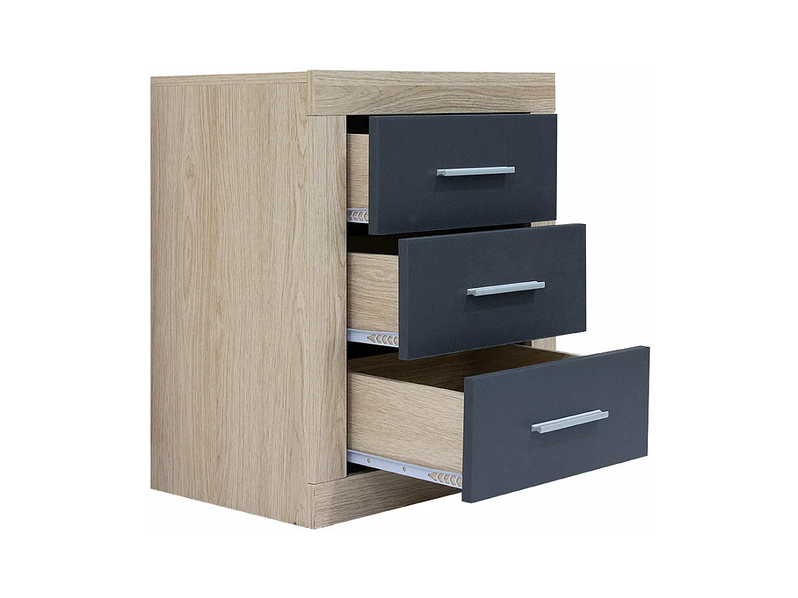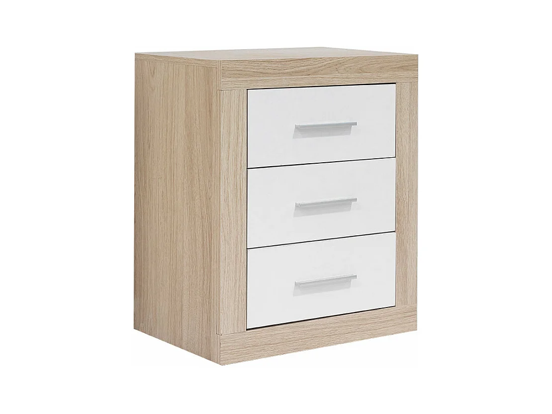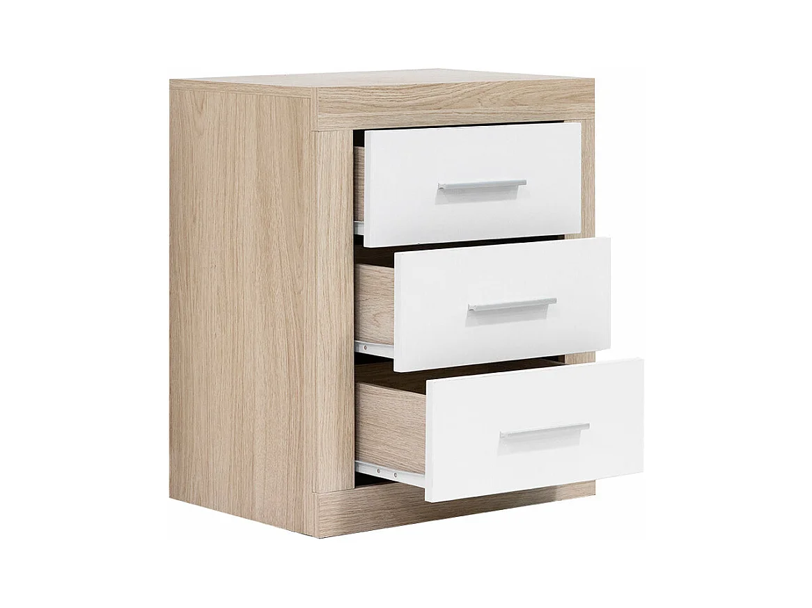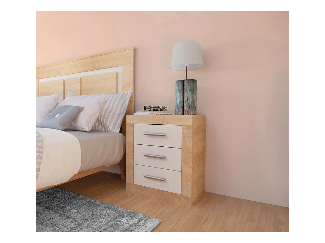 Mesita de Noche Kiara 3 Cajones Cambria y Blanco 50x60 cm
