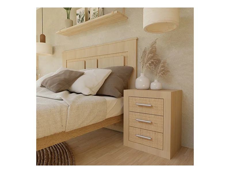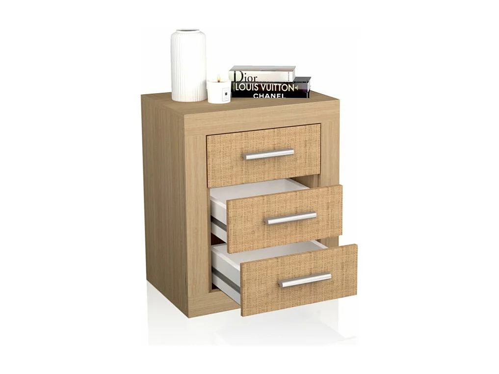 Mesita de noche Numa 3 cajones Gris Alpino - Oak