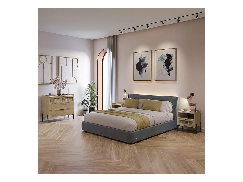Mesita de noche Numa 2 cajones Gris Alpino - Oak