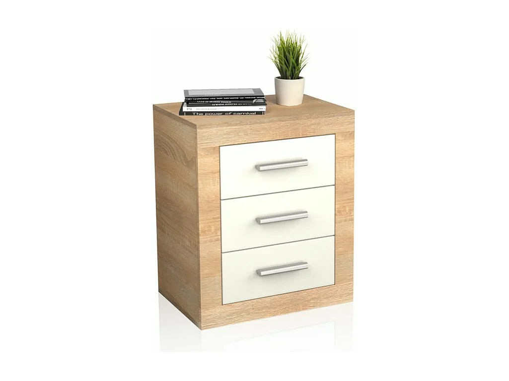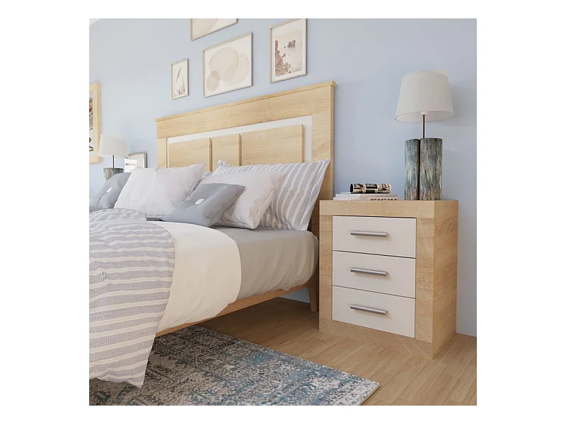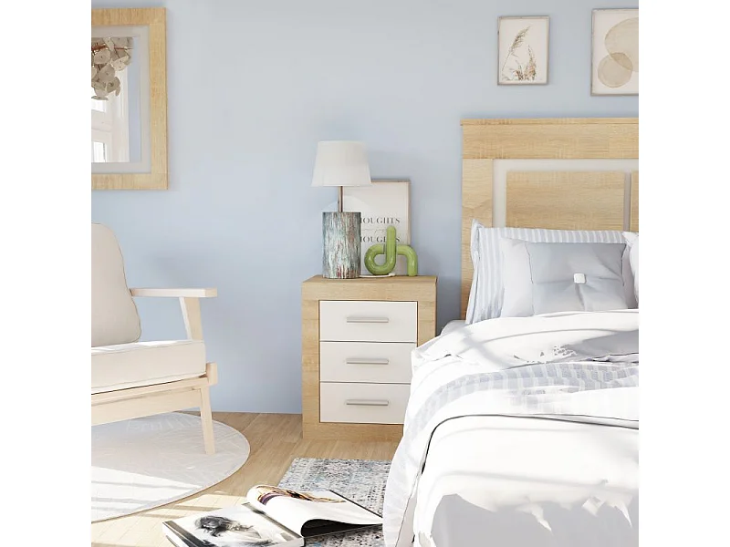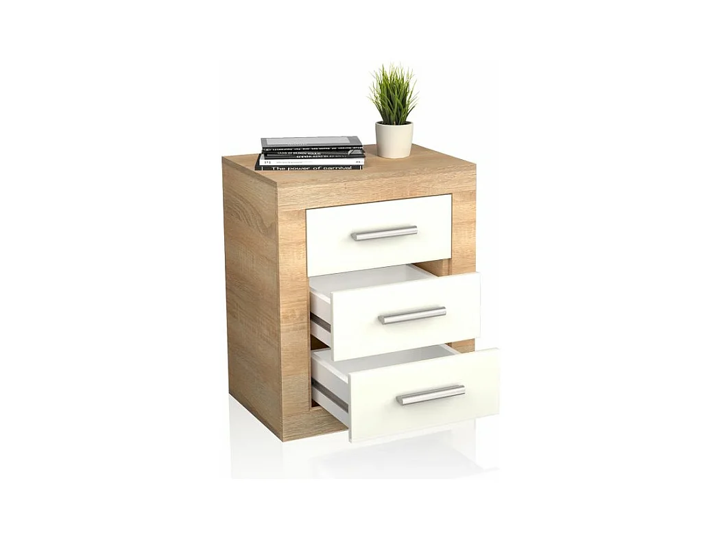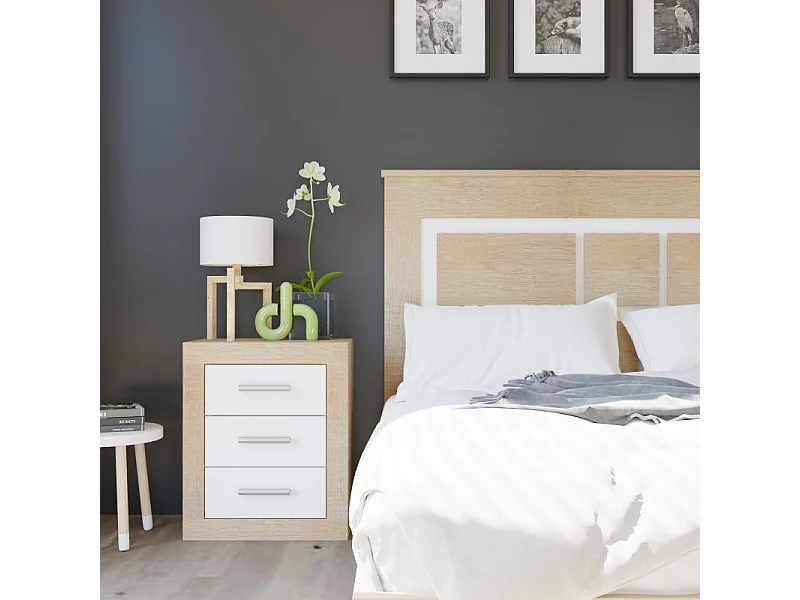 Mesita de noche Numa 3 cajones Blanco - Oak Soft