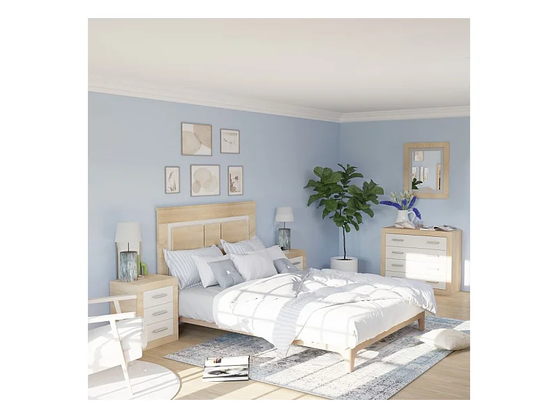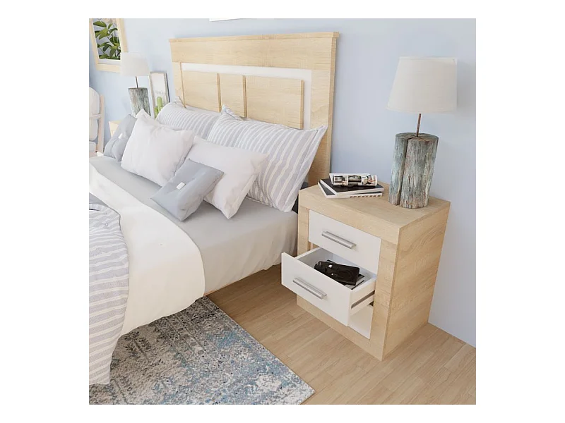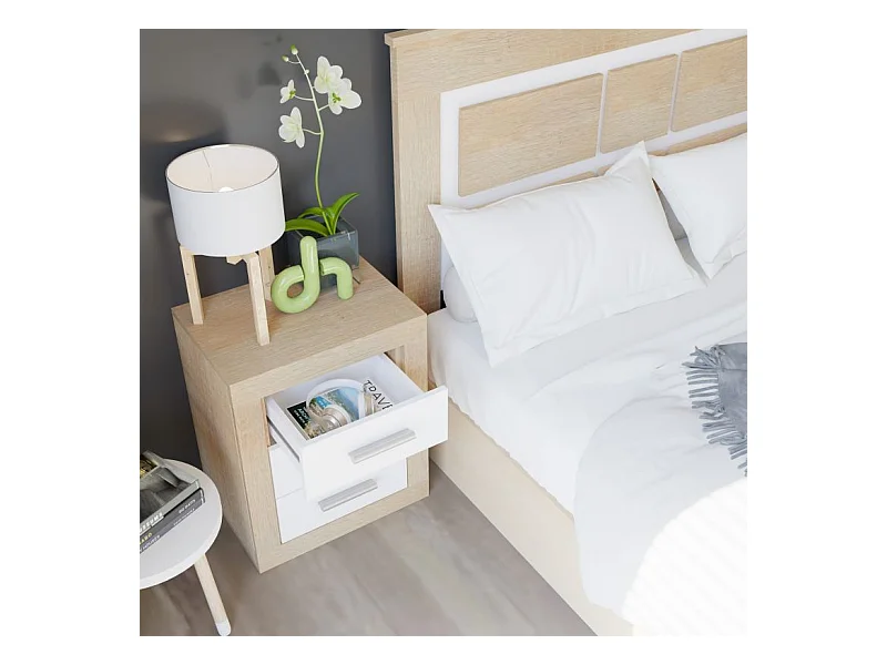 Mesita de noche Numa 2 cajones Blanco - Oak Soft