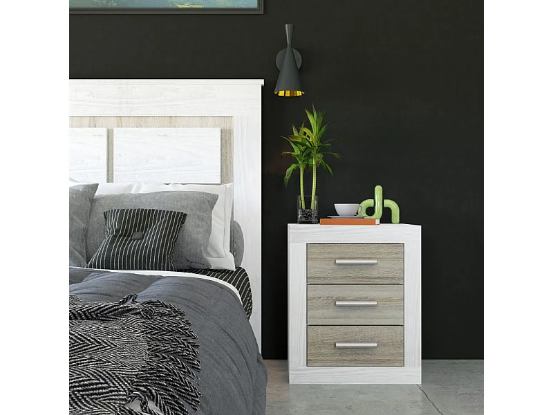 Mesita de noche Numa 3 cajones Gris Alpino - Oak