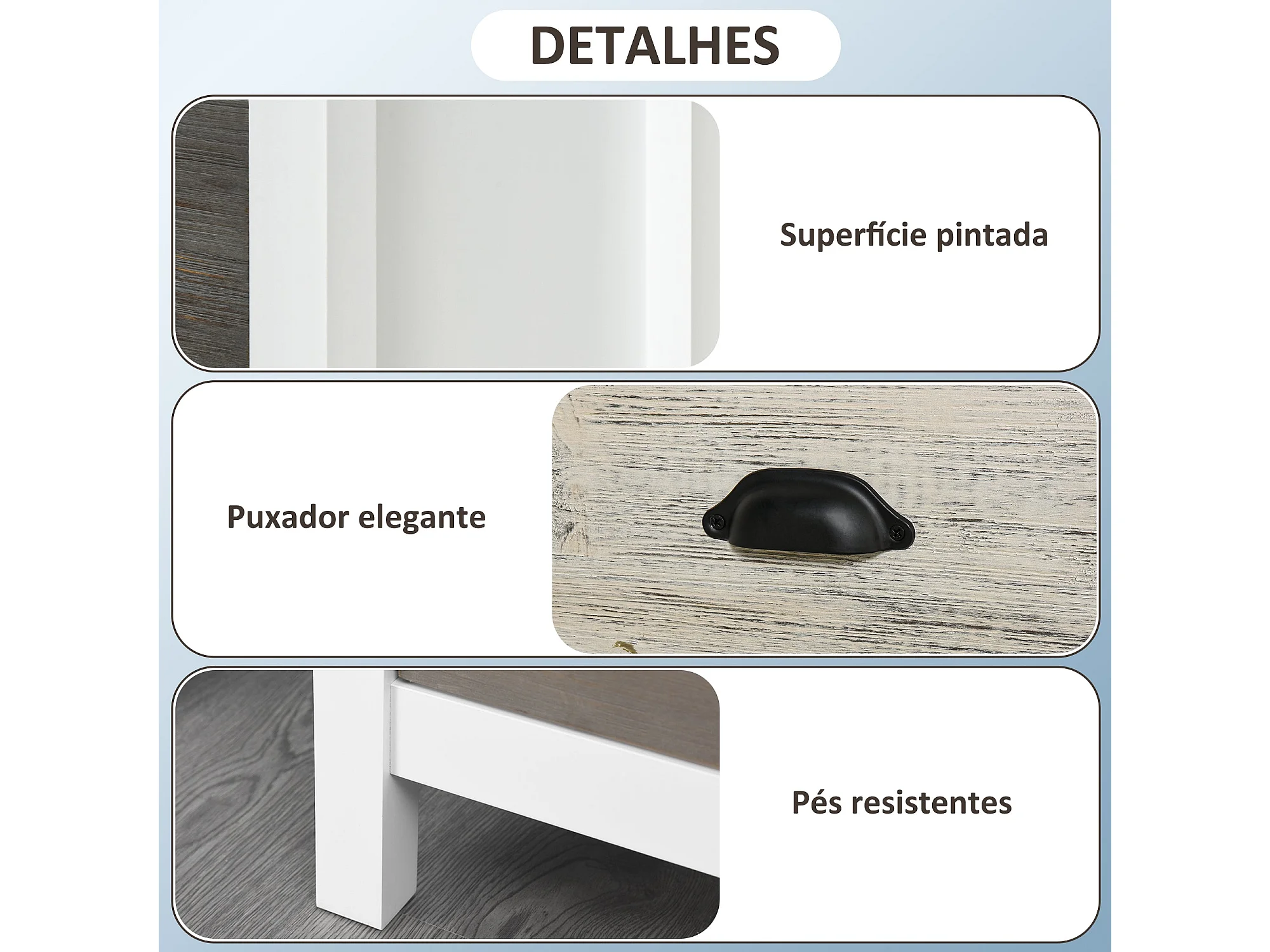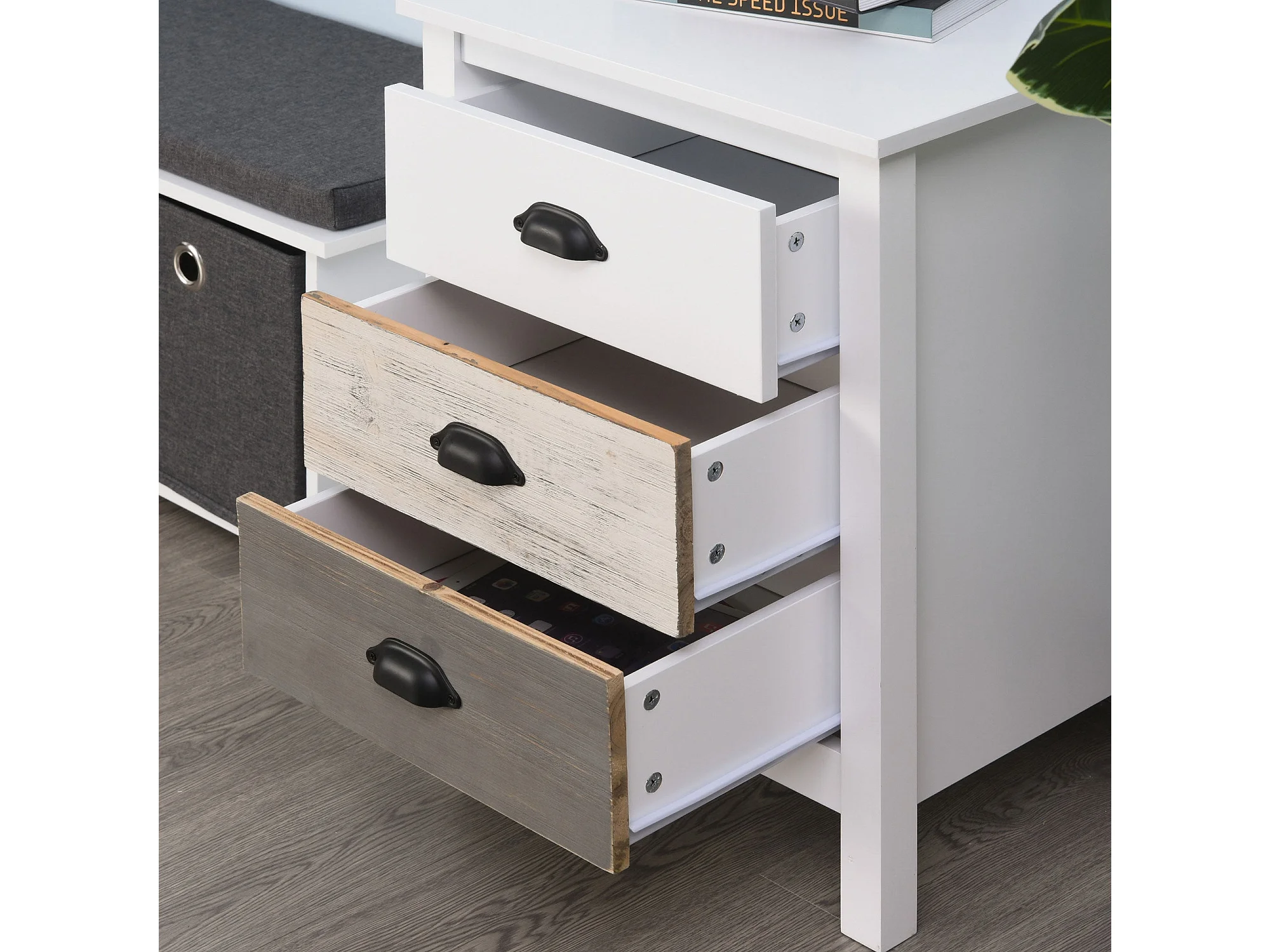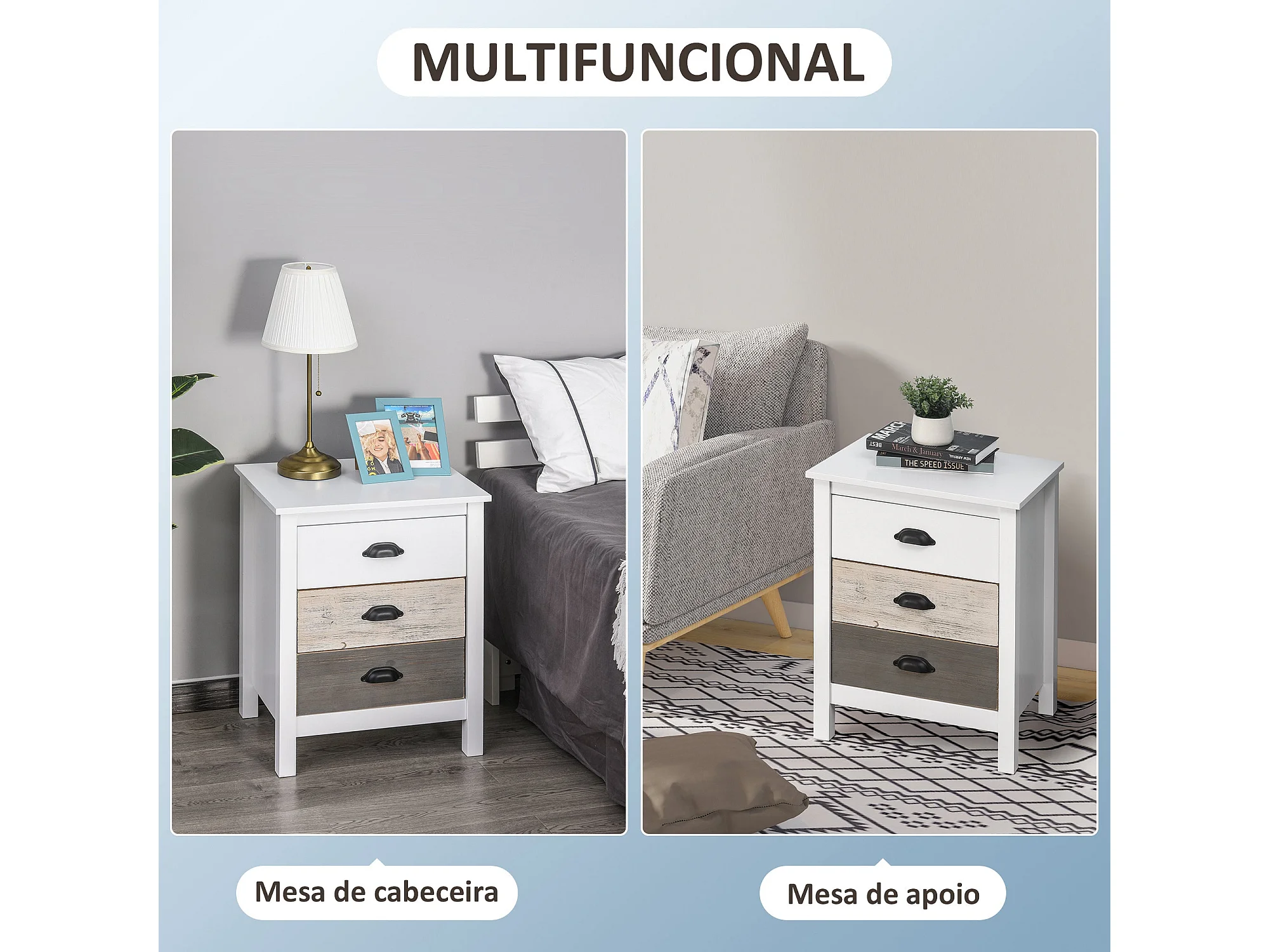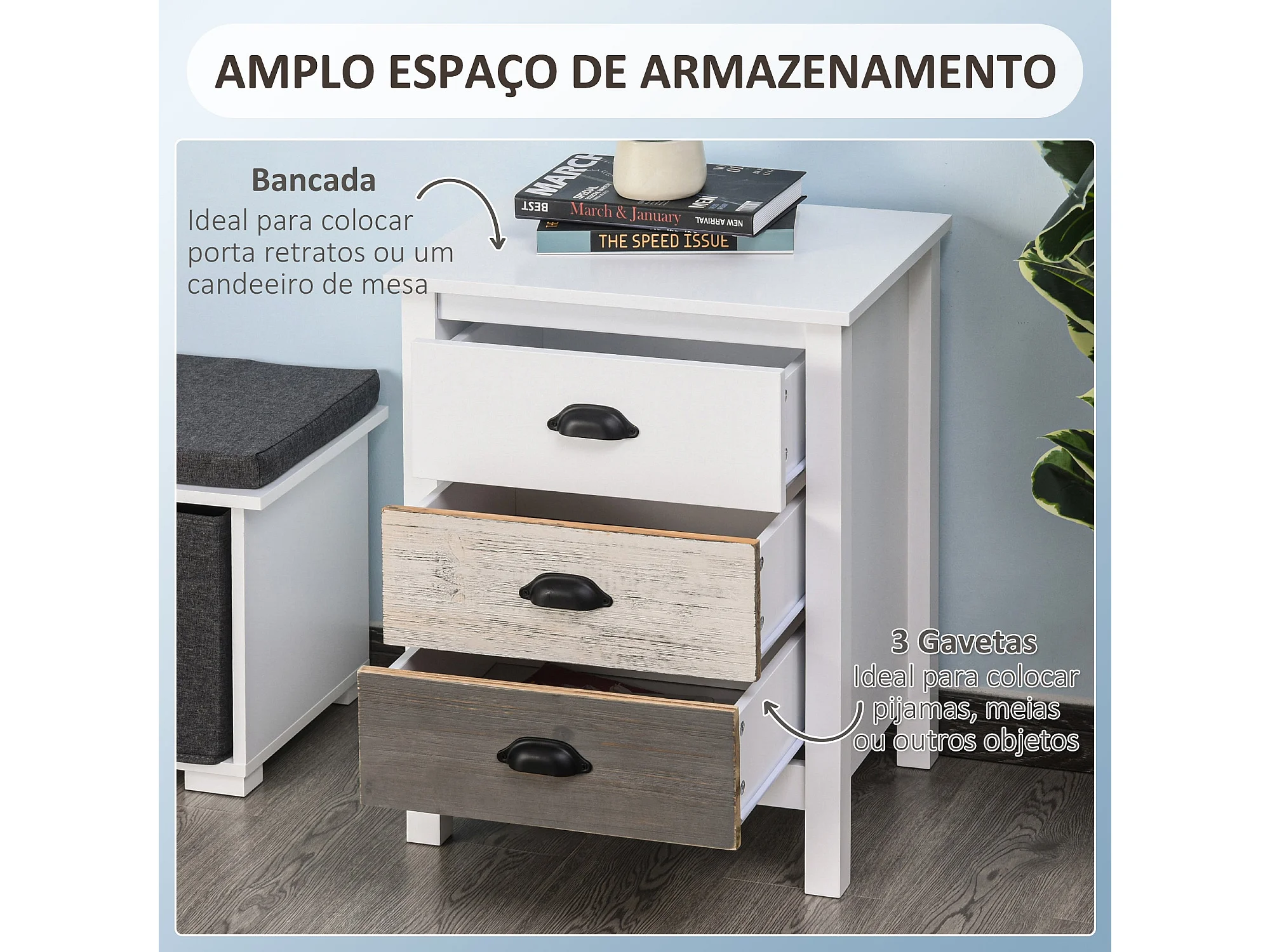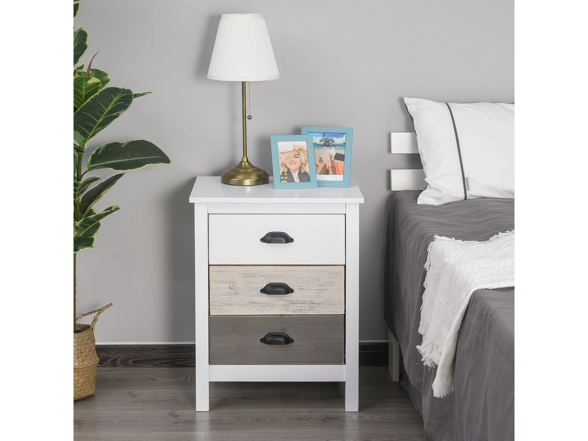Mesita de noche Luna Homcom 3 cajones blanco 65x50x38 cm