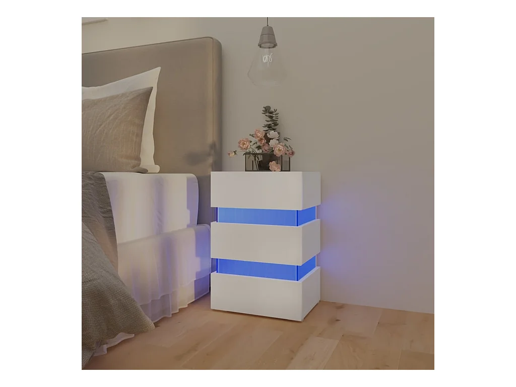 Mesita de noche con luces LED blanca 70x36x40,5 cm ES27865