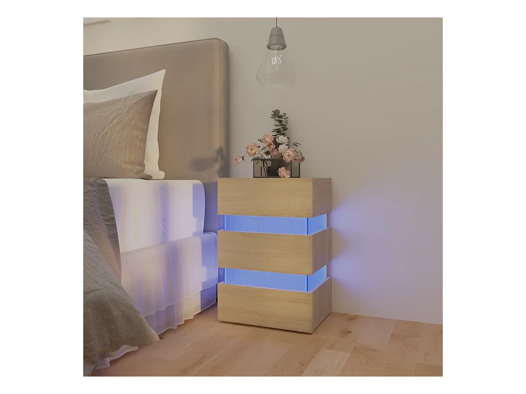 Mesita de noche con luces LED contrachapada Sonoma 60x35x40 cm ES94487