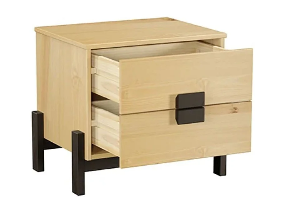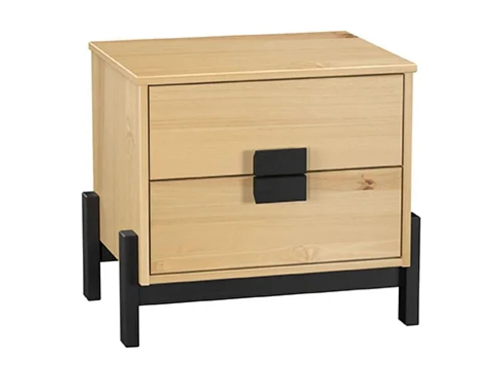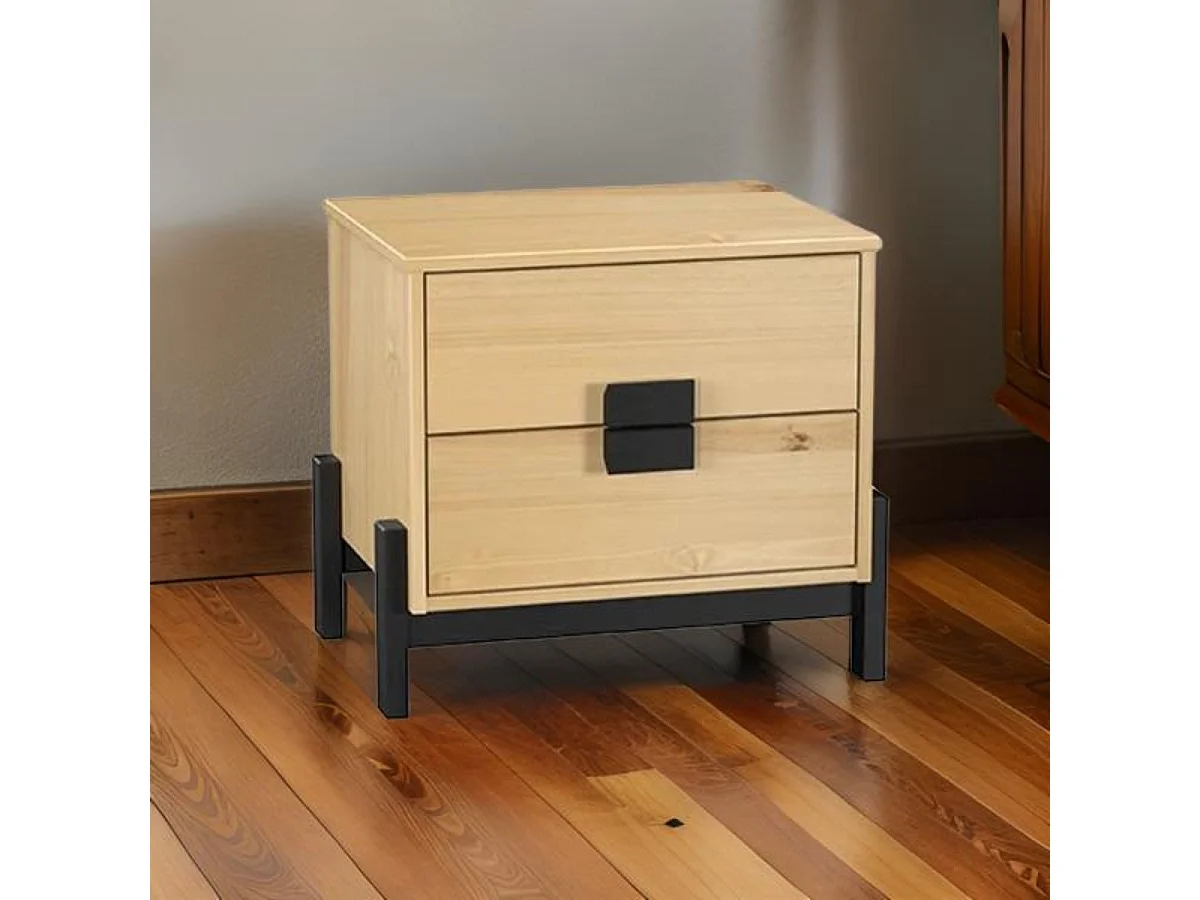 Mesita de noche Macarena 2 cajones natural/negro 48x54x40 cm