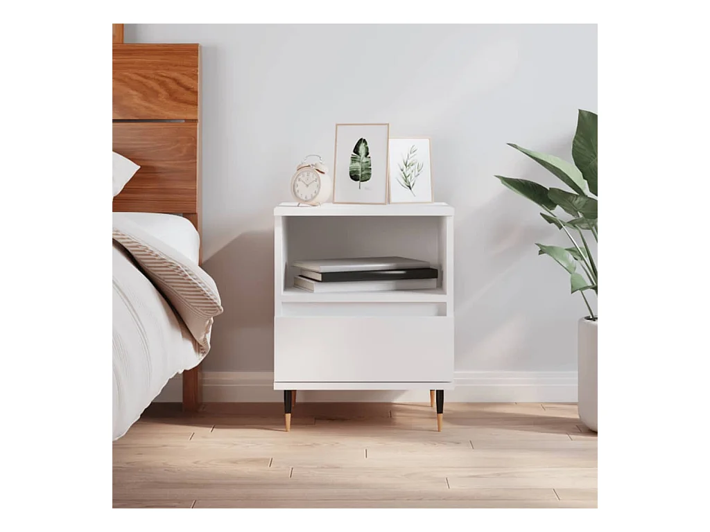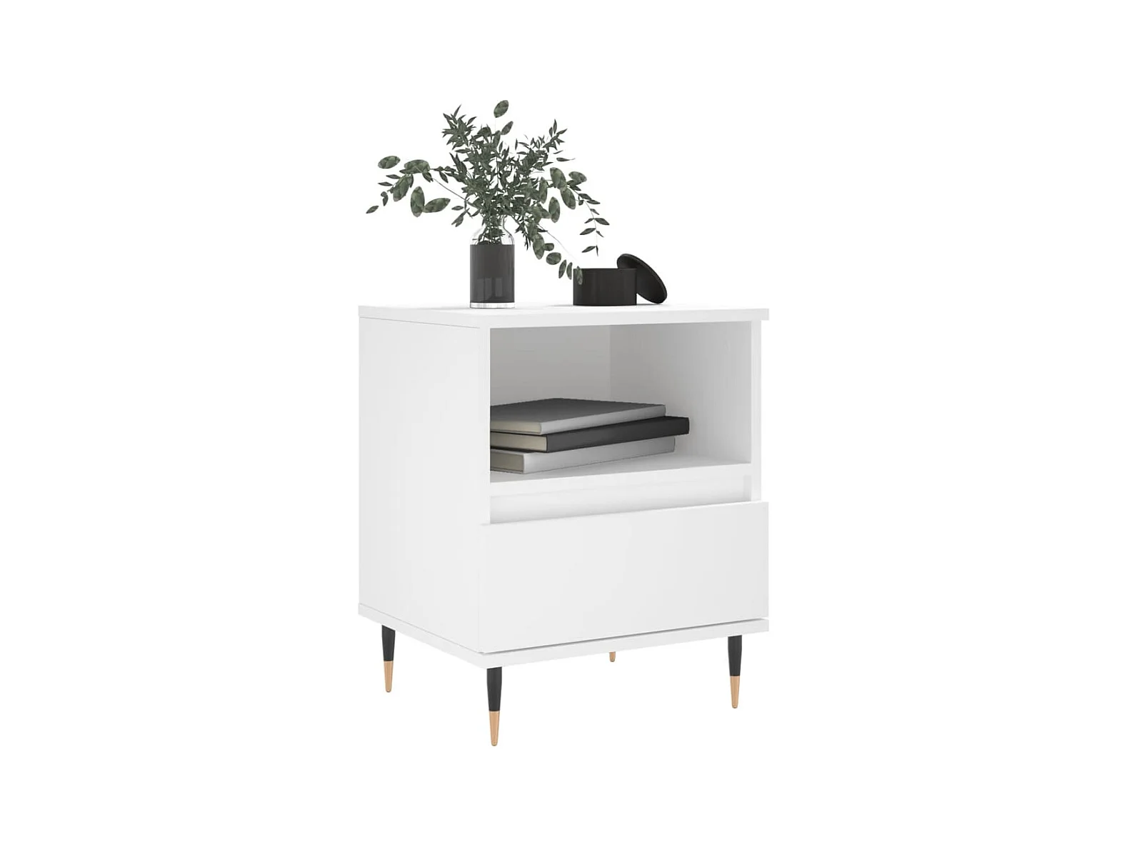 Mesita de noche madera contrachapada blanco brillo 40x30x40 cm ES35340