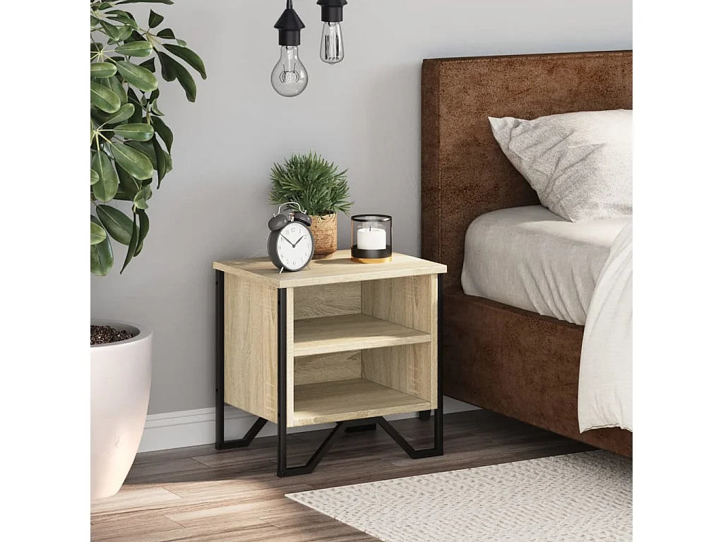 Mesita de noche madera contrachapada color roble 40x30x40 cm