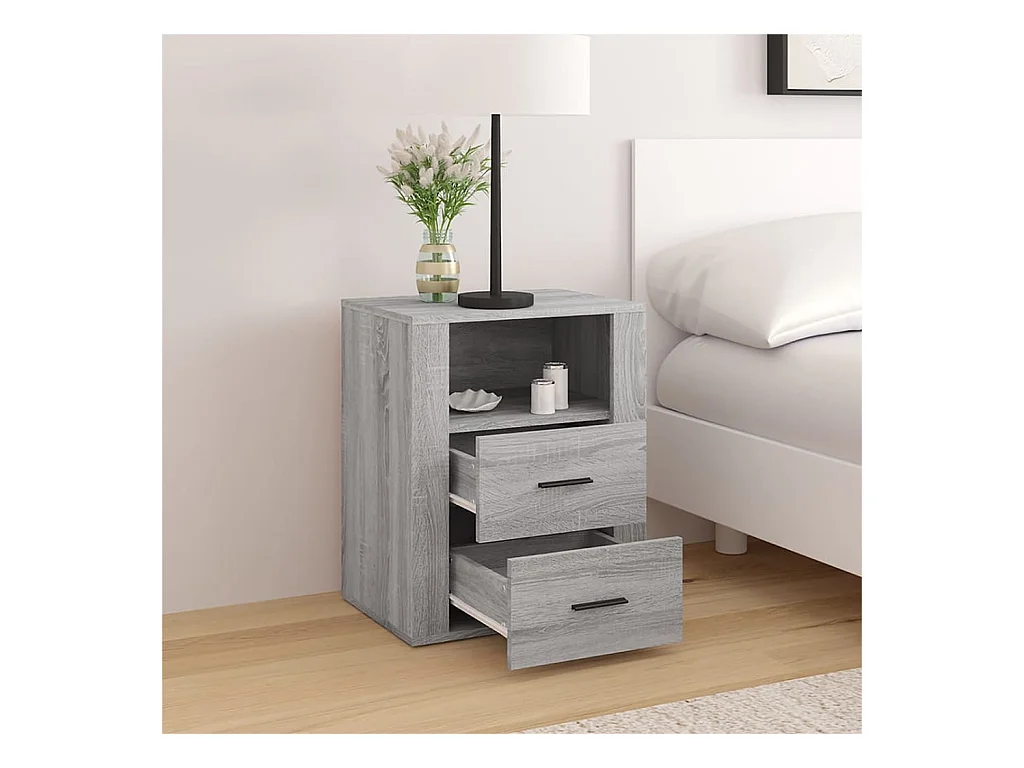 Mesita de noche madera contrachapada gris Sonoma 50x36x60 cm ES84409