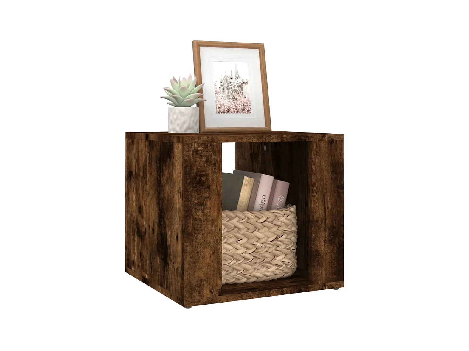 Mesita de noche madera contrachapada roble ahumado 41x40x36 cm ES68110