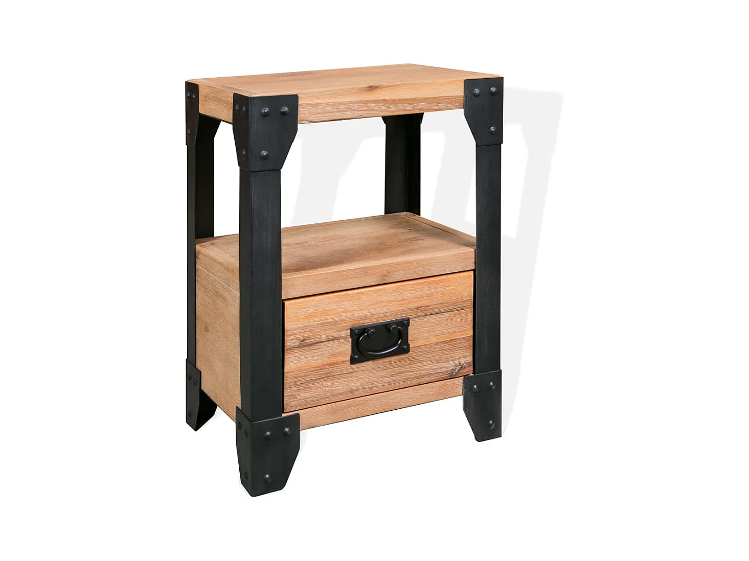 Mesita de noche Madera de acacia Acero 40 x 30 x 54 cm