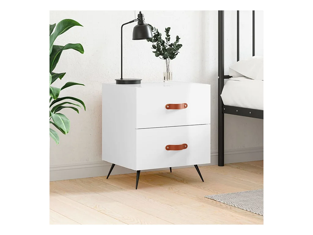 Mesita de noche madera de ingeniería blanco brillo 40x35x47,5cm ES31422