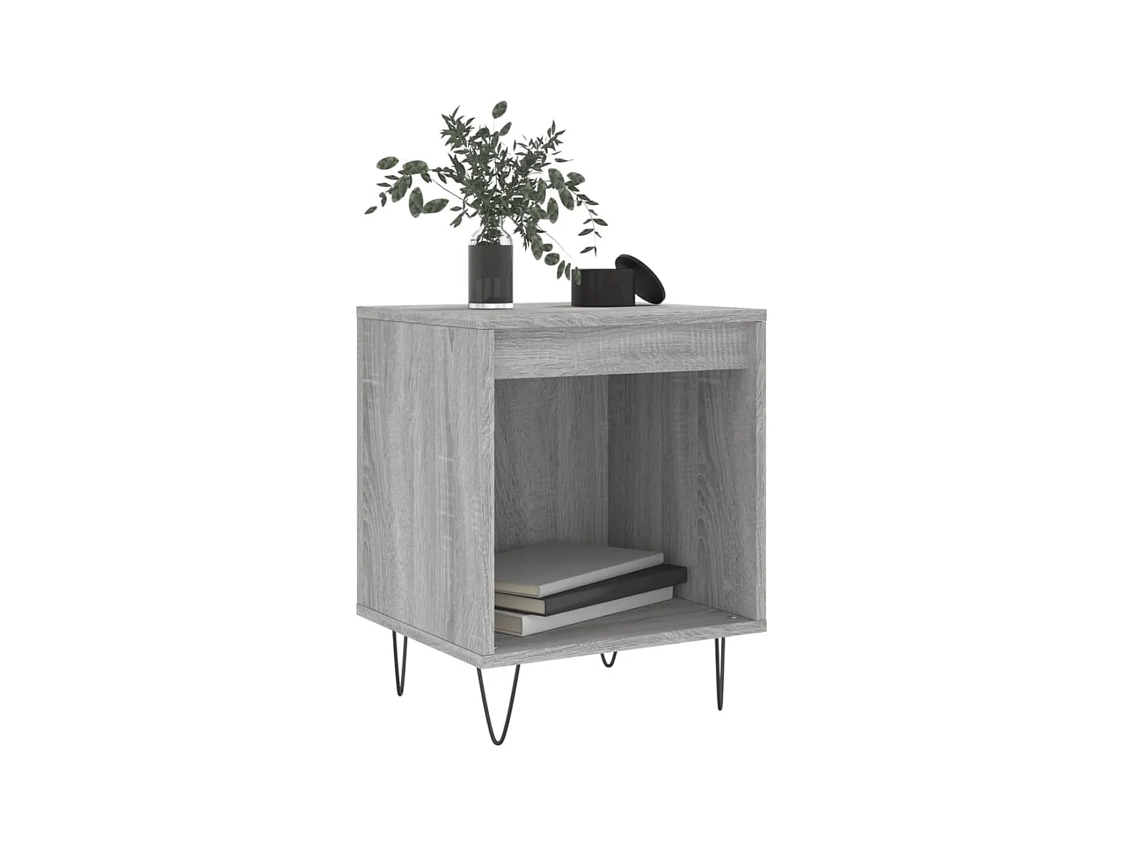 Mesita de noche con patas de metal gris Sonoma 40x35x50 cm ES85720