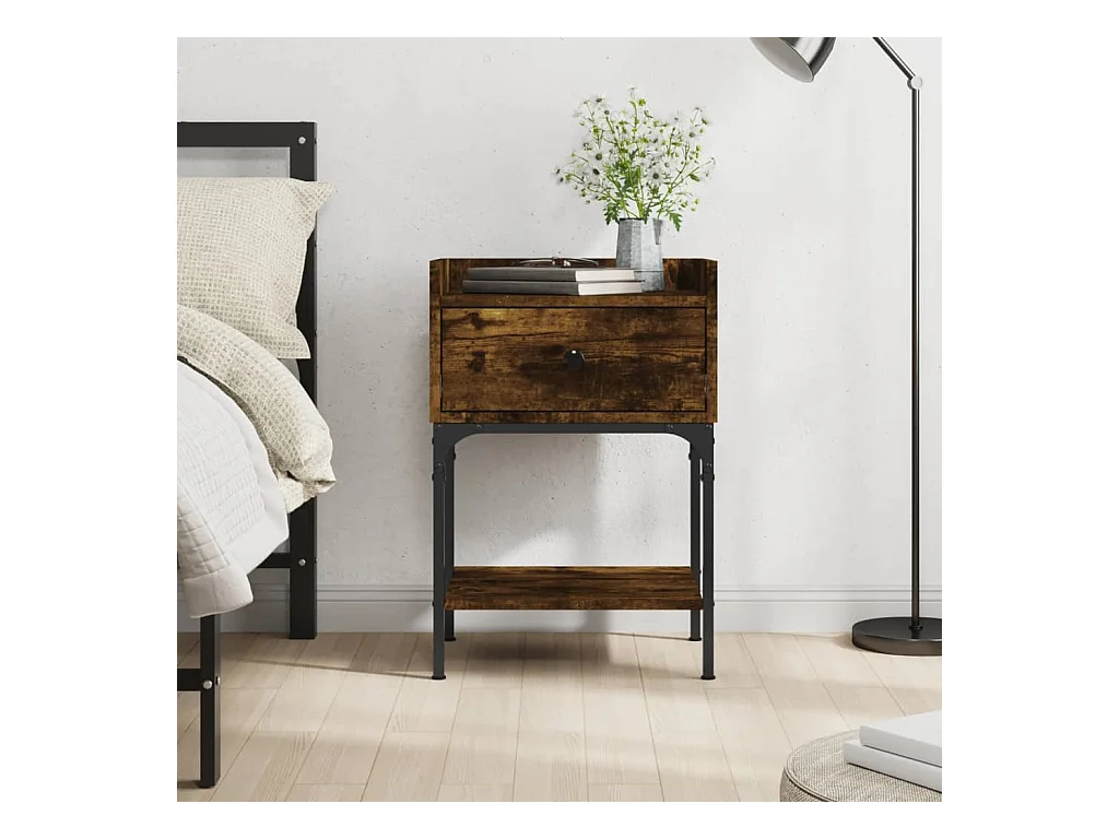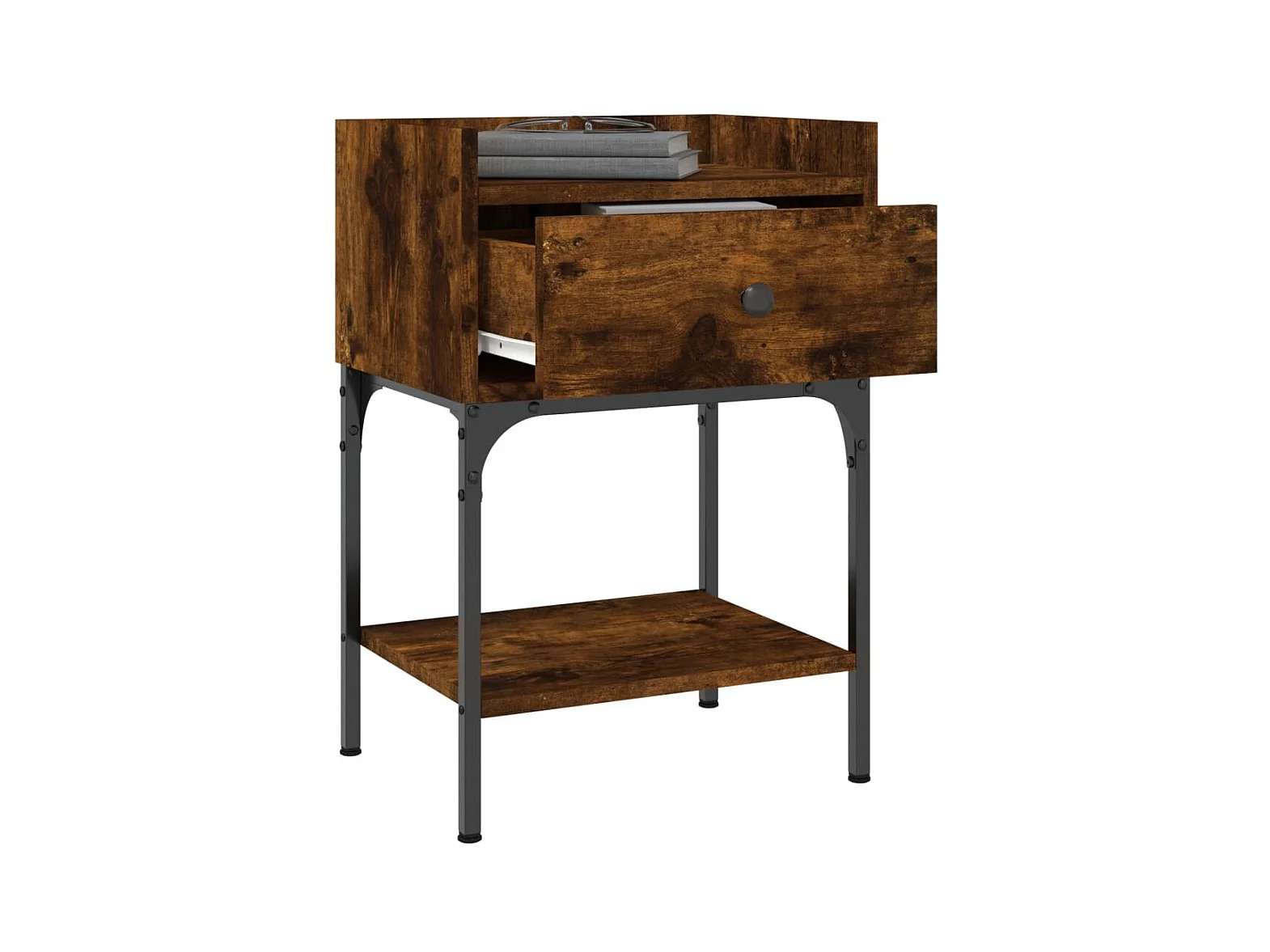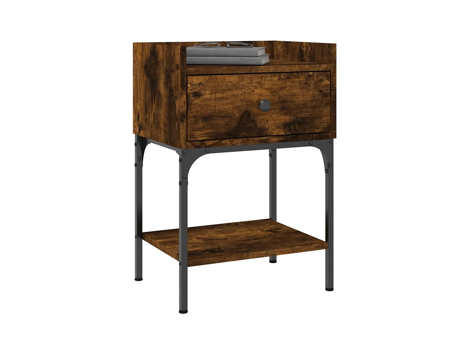 Mesita de noche madera de ingeniería roble ahumado 40,5x31x60cm ES14916