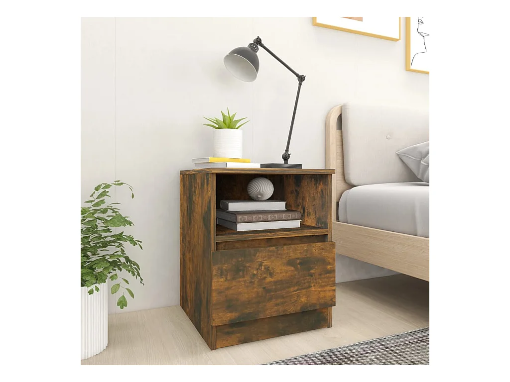 Mesita de noche madera de ingeniería roble ahumado 40x40x66 cm ES77533